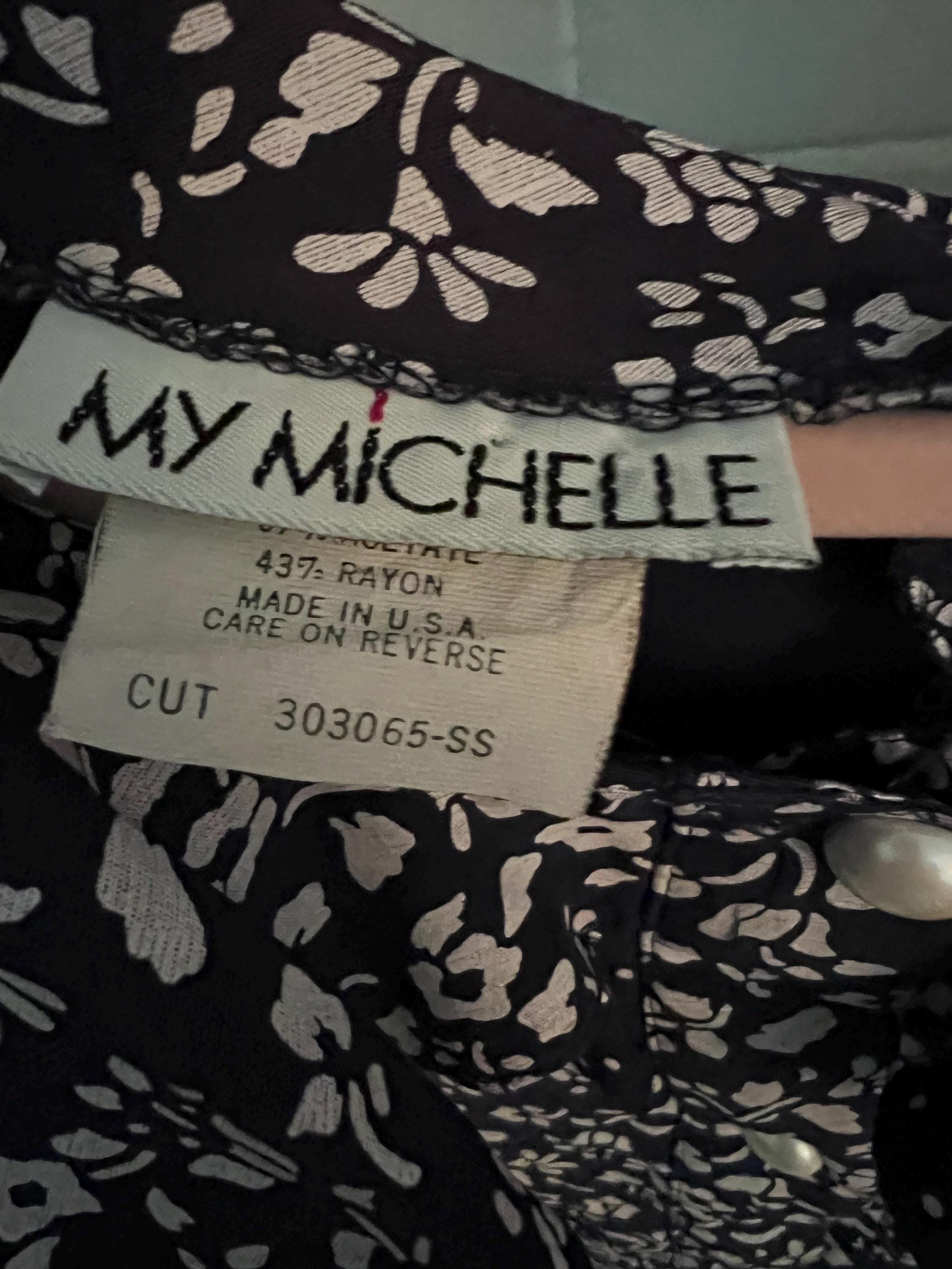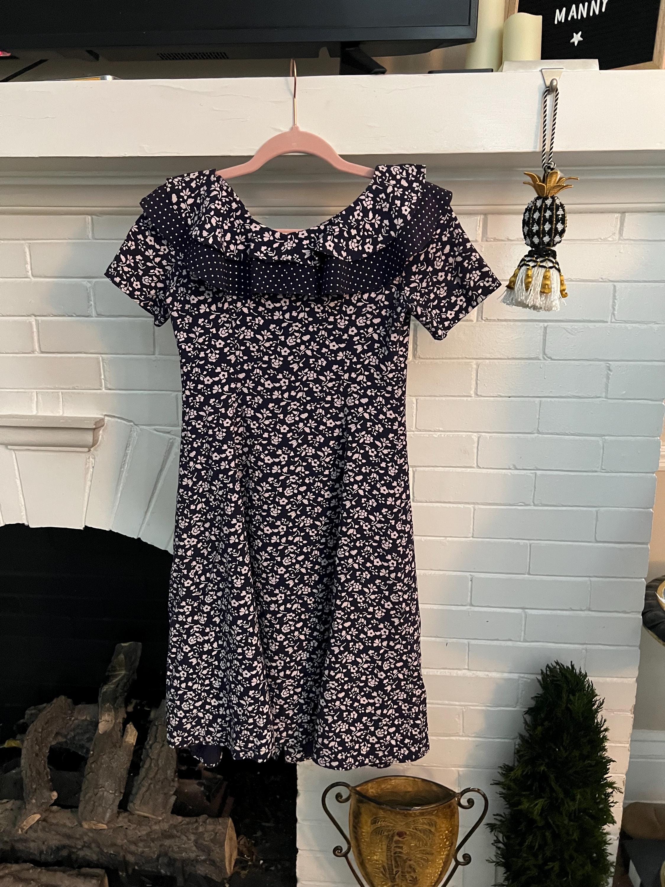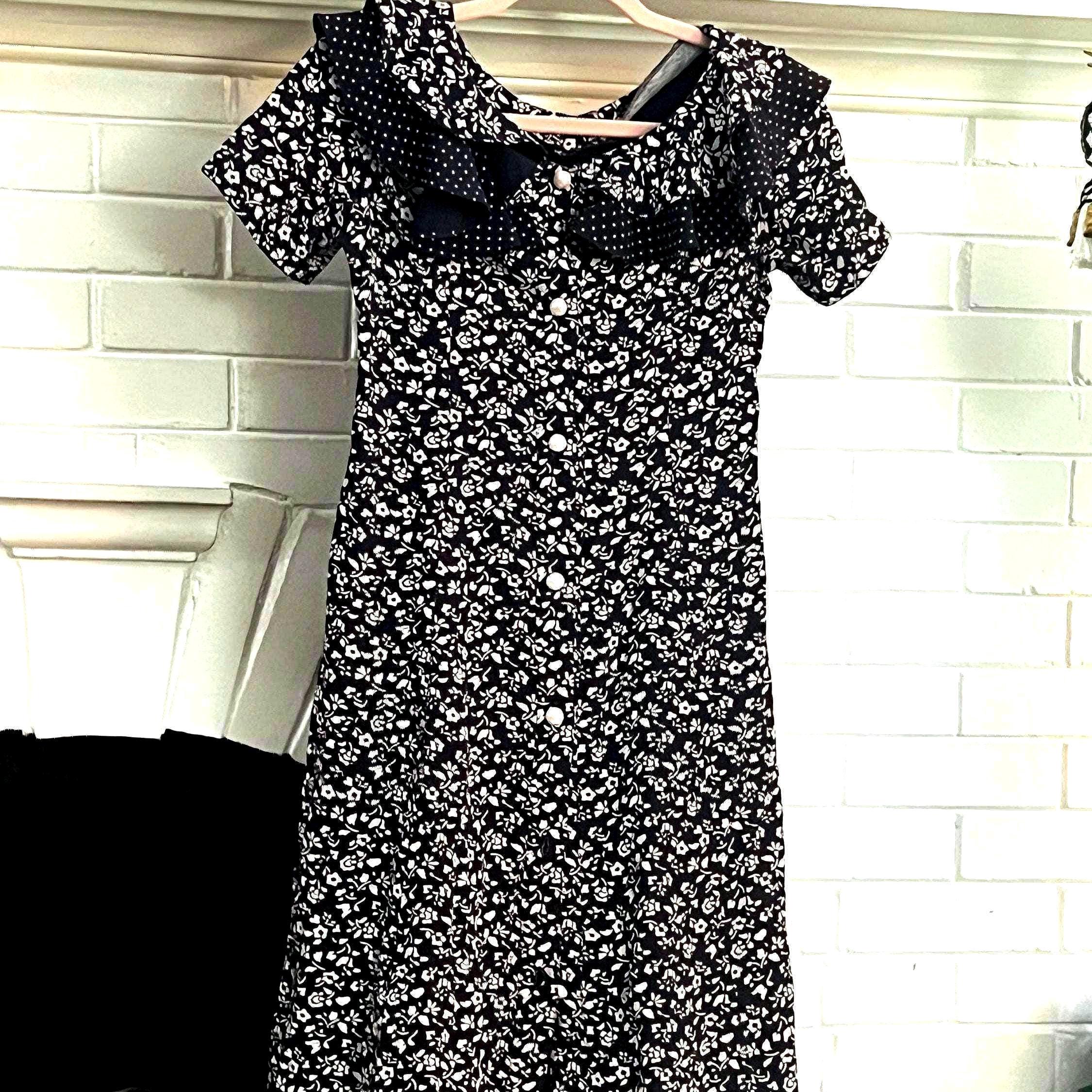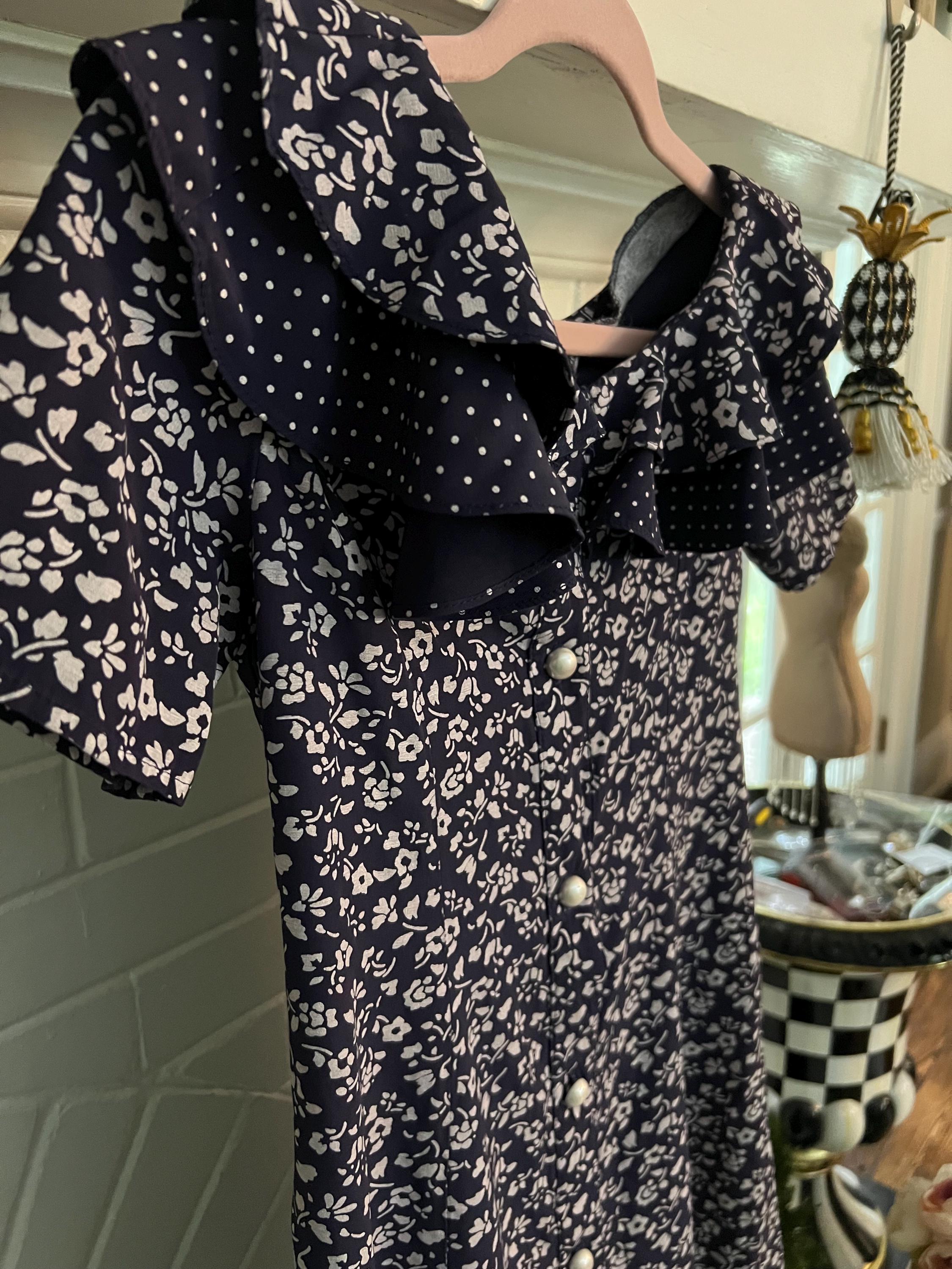 Vintage Floral Dress by My Michelle size ex small, dark purple with white flowers, Peter Pan collars and faux pearl buttons