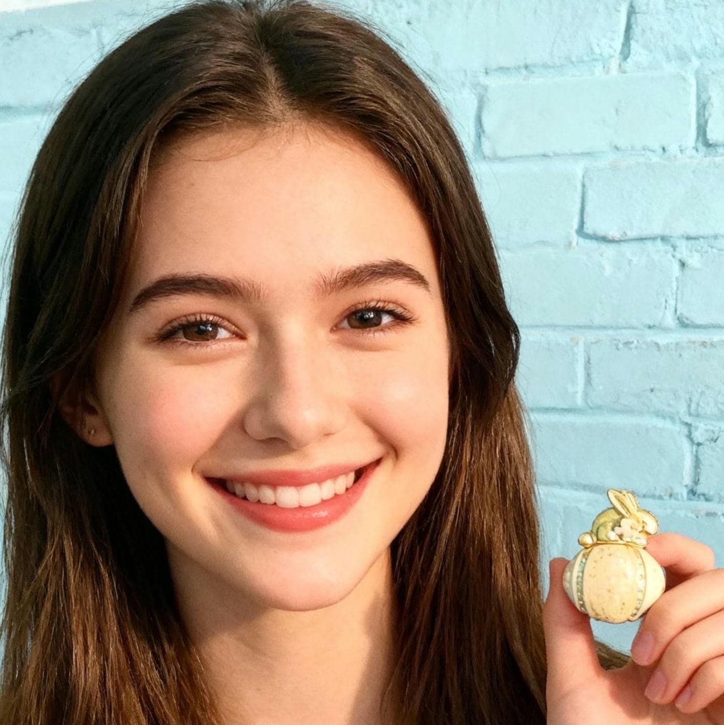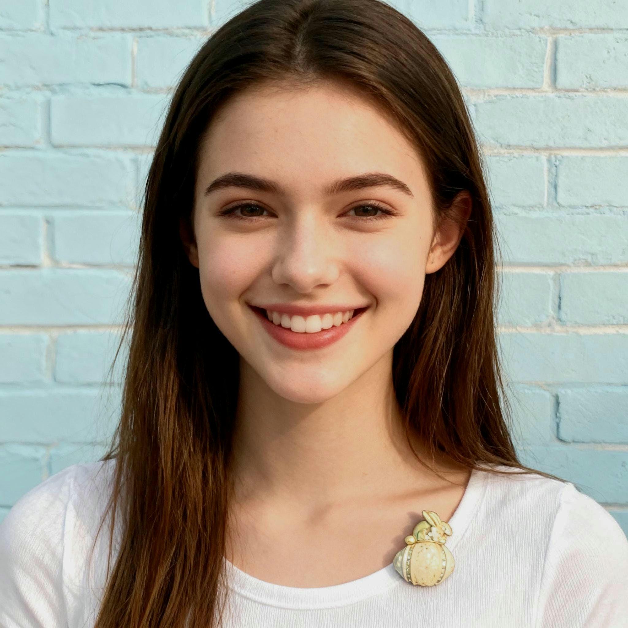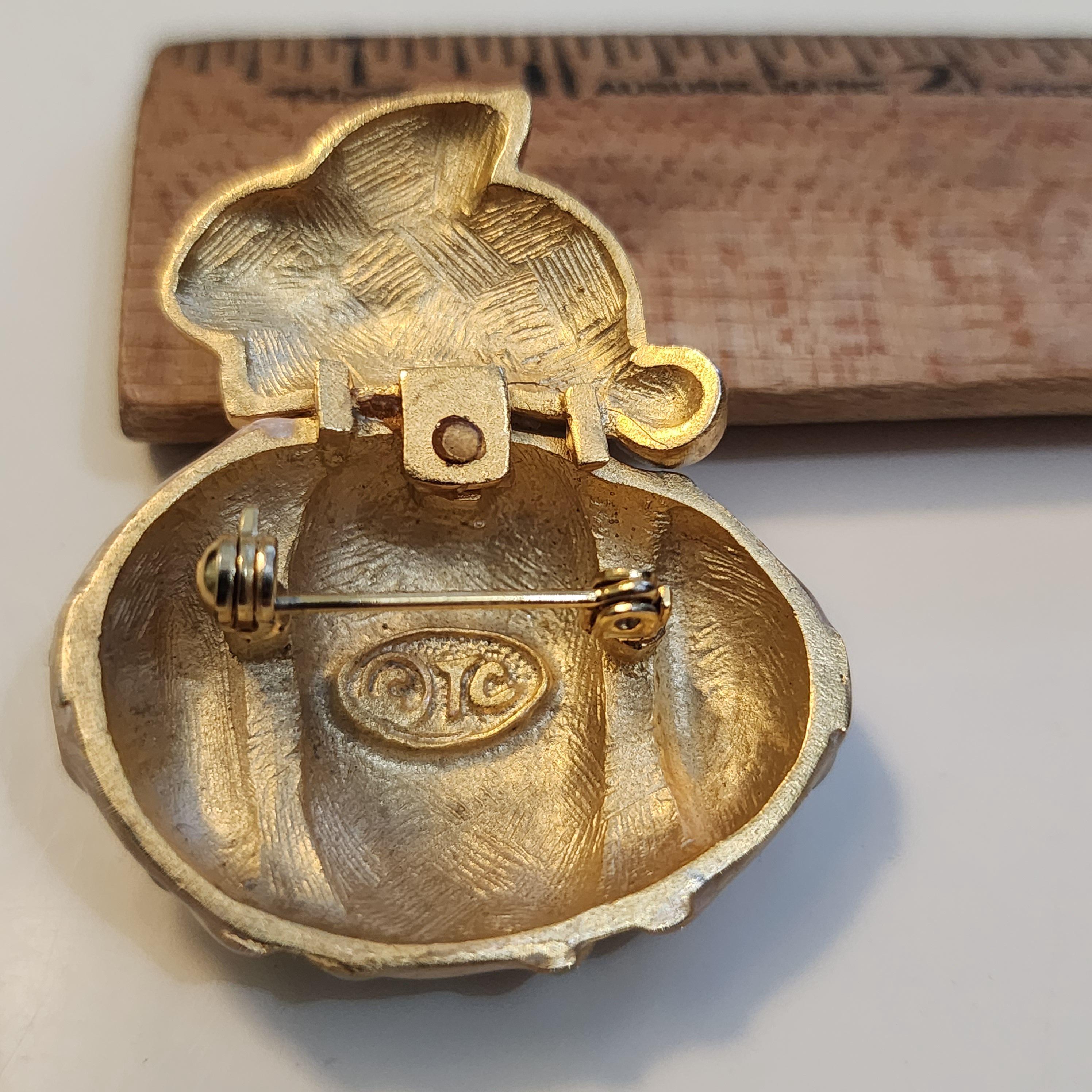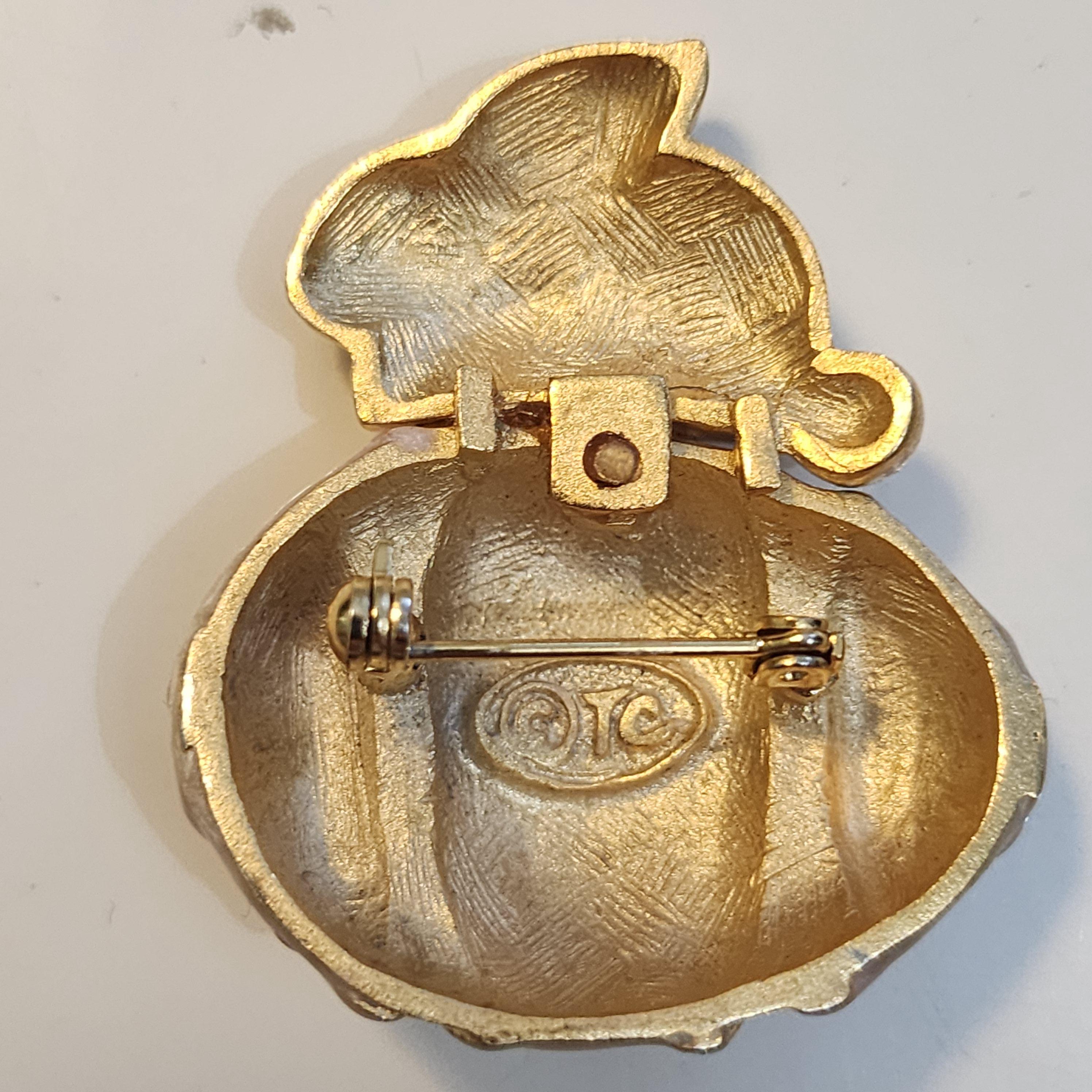 Vintage Bunny Rabbit on and Easter Egg Enamel Brooch Pin, Matte Gold tone, signed