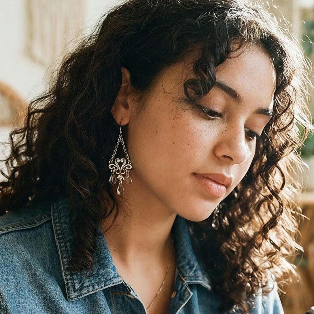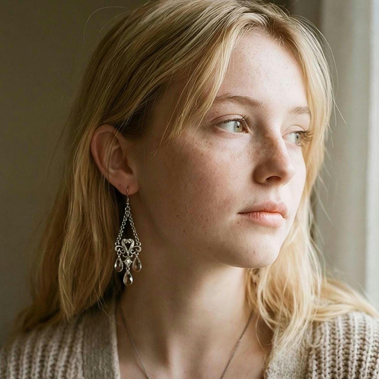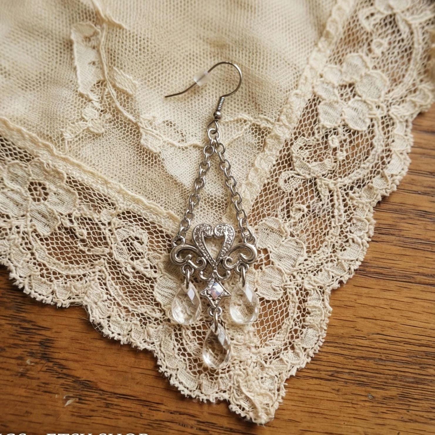 Y2K Sparkly Heart & Faux Crystal Chandelier Dangles, Shiny Silver tone Glamour Jewelry Statement Earrings, Vintage Earrings