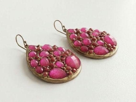 Vintage Y2K Magenta Teardrop Dangle Starement Earrings, Millennial Glamour Jewelry