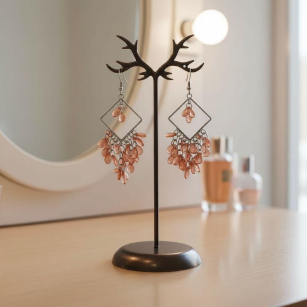 Beautiful 4 inch long Y2K Blush Rosé (like the wine!) Chandelier Dangle statement earrings, Millennial Glamour Jewelry