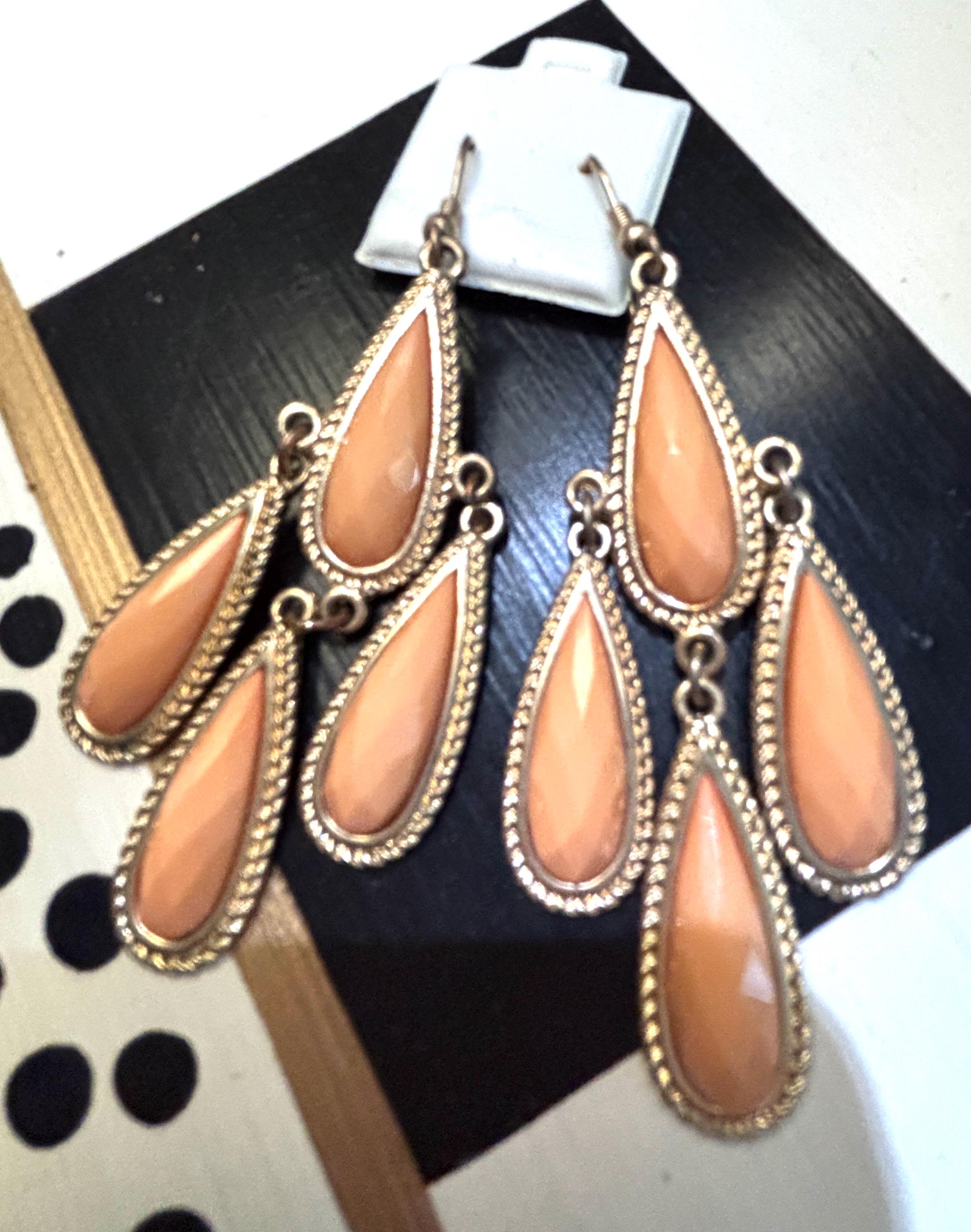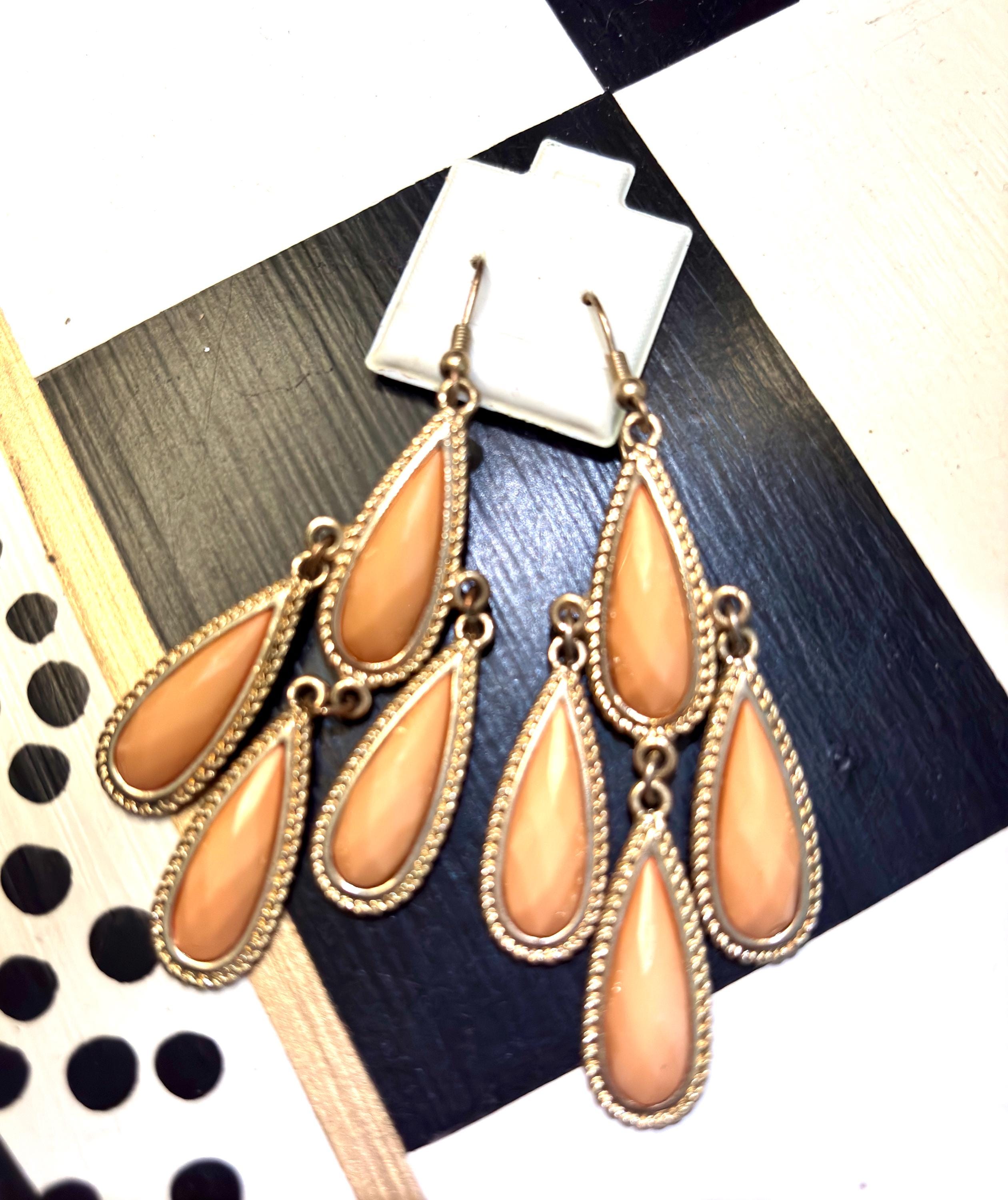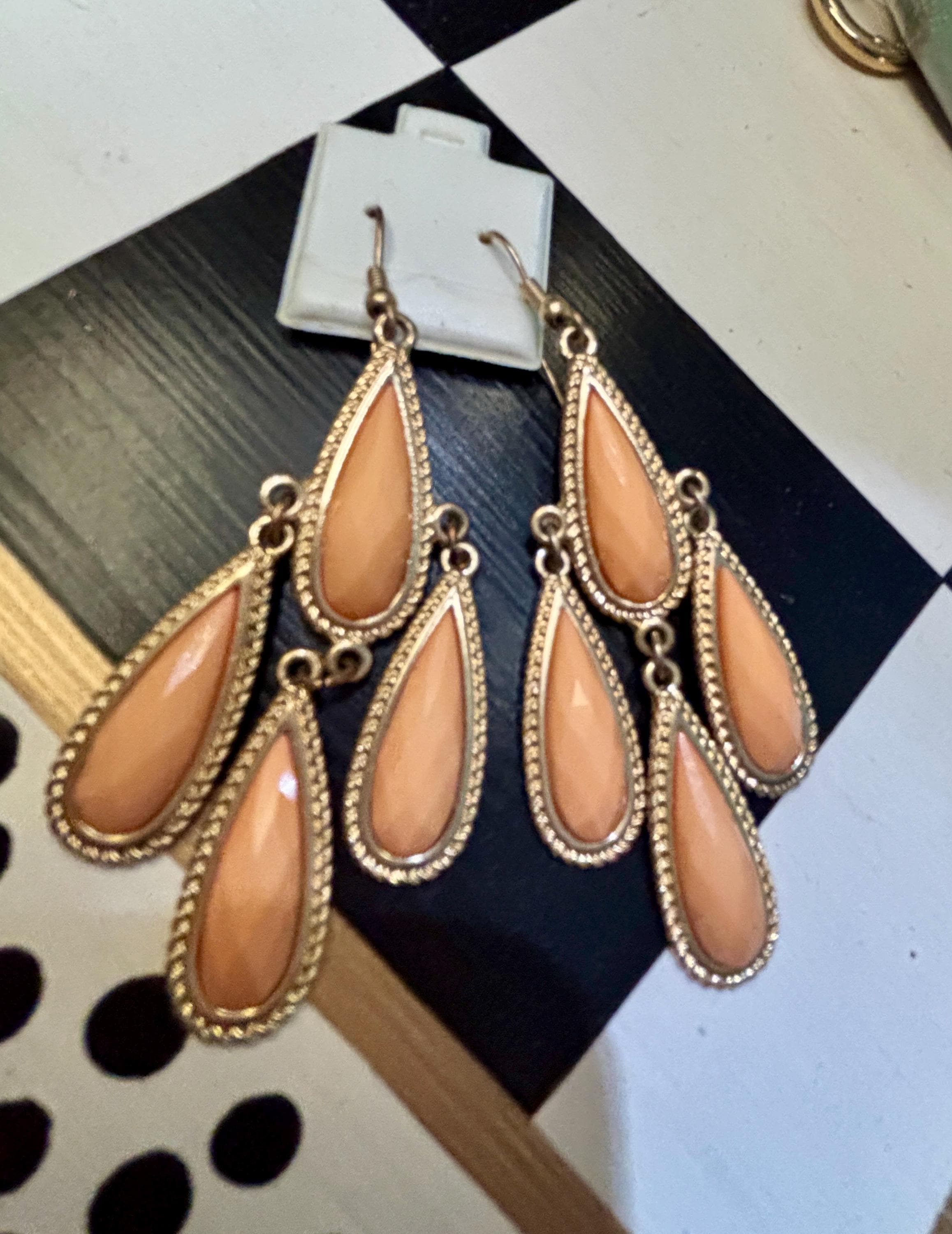 Vintage Y2K Swingy Dangles, Millennial Glamour Jewelry, Demure Peachy Light Coral Resort Statement Earrings