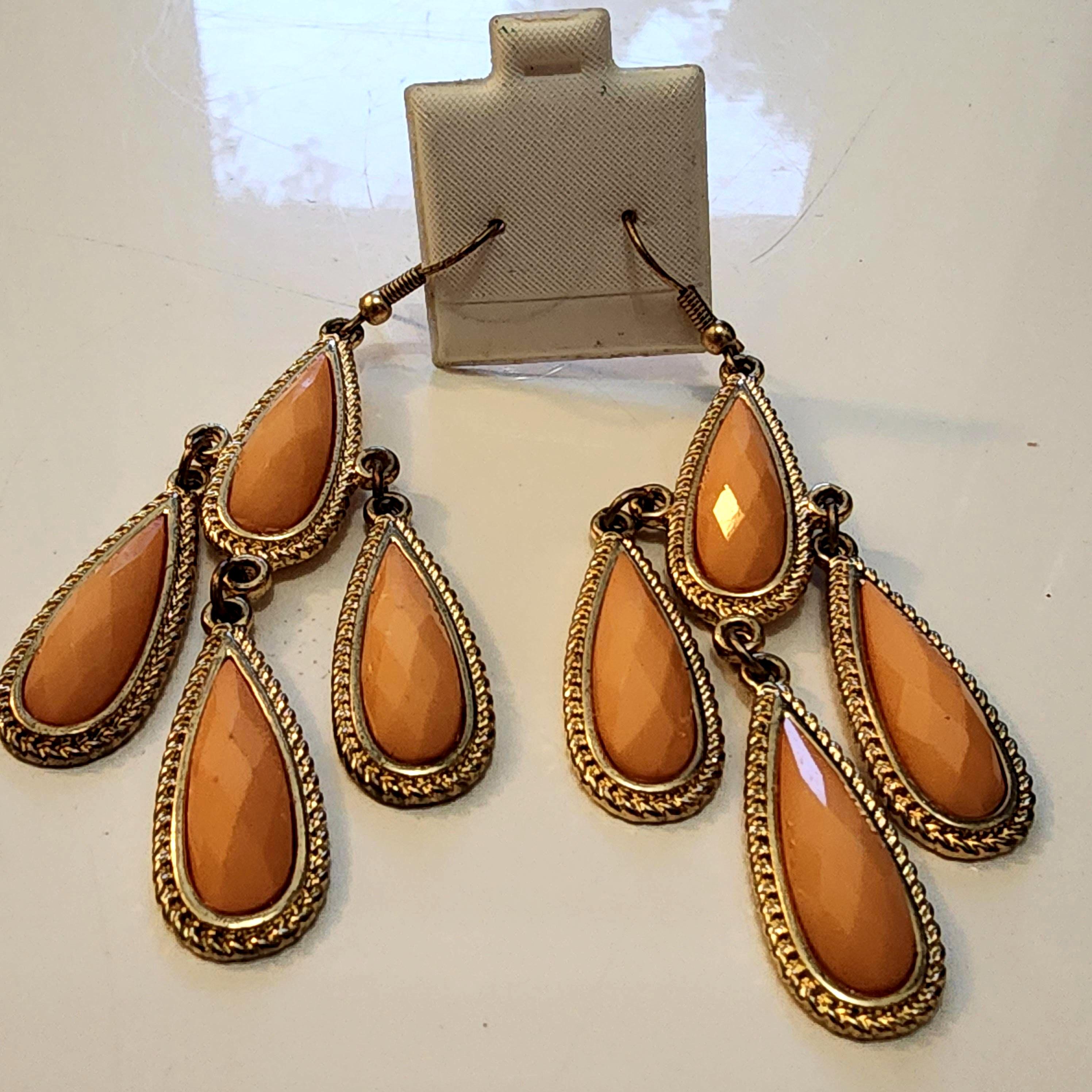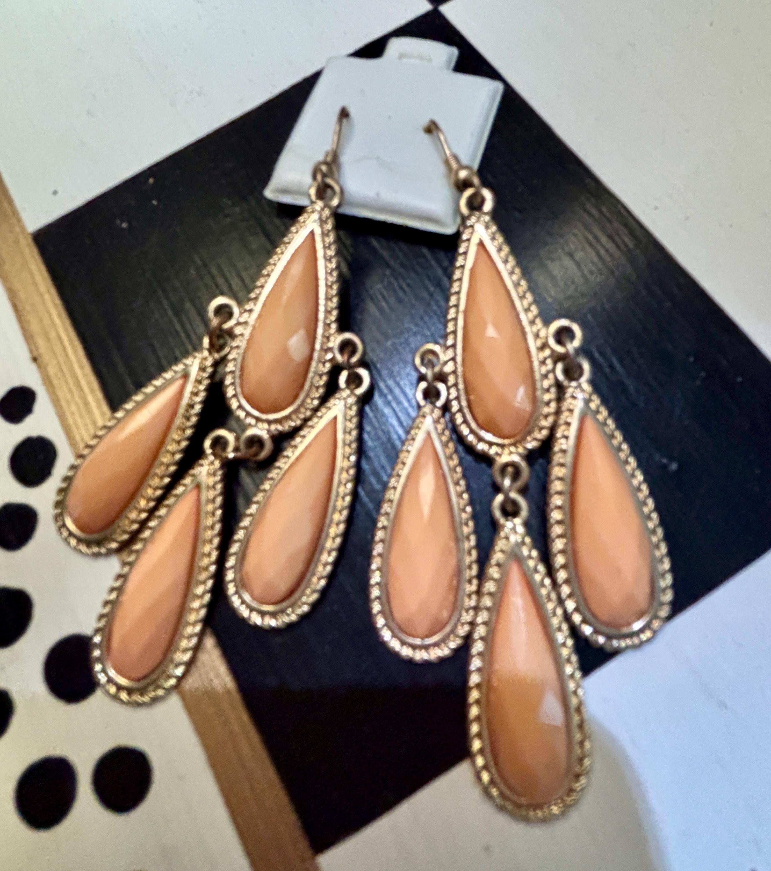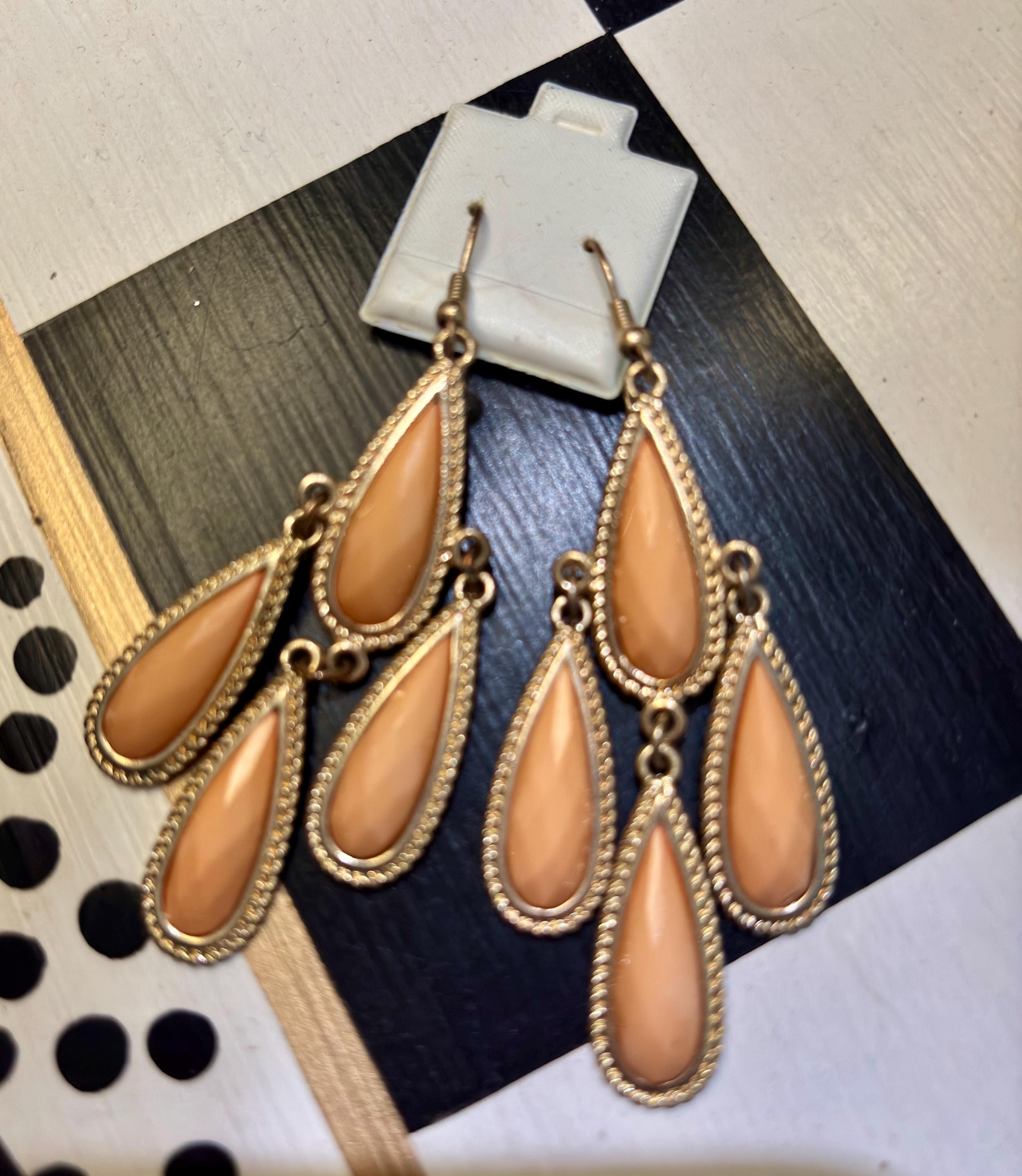 Vintage Y2K Swingy Dangles, Millennial Glamour Jewelry, Demure Peachy Light Coral Resort Statement Earrings