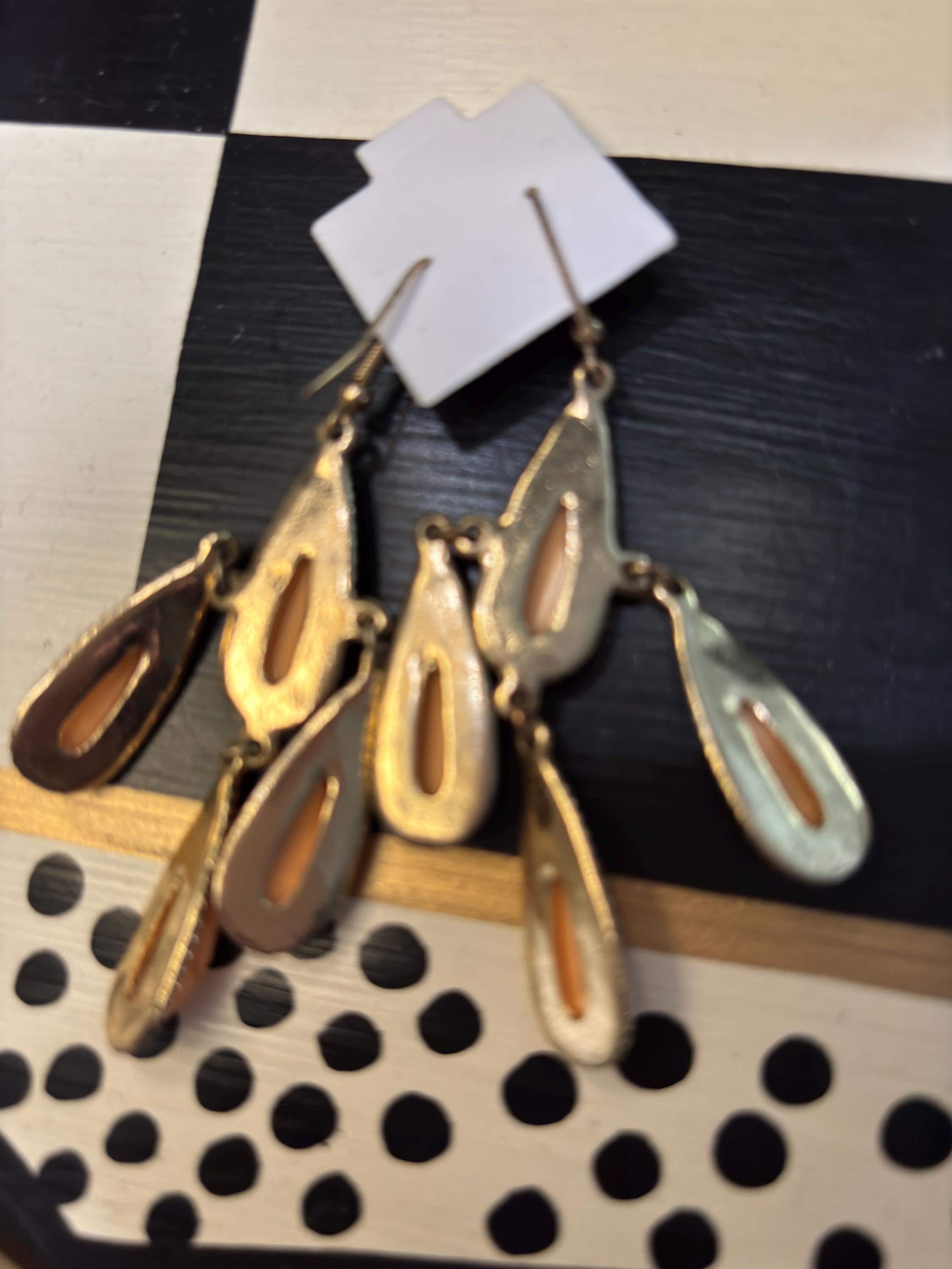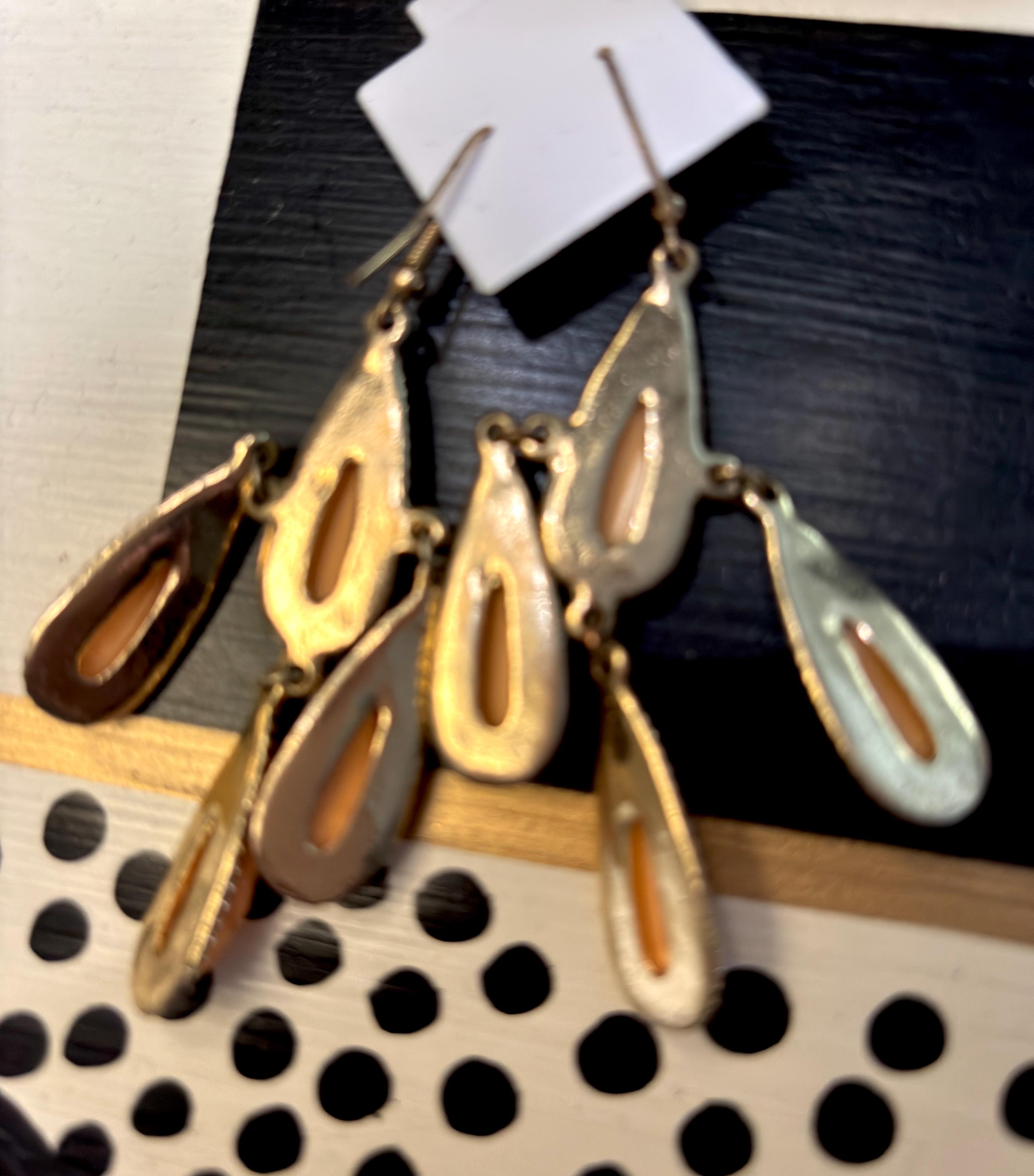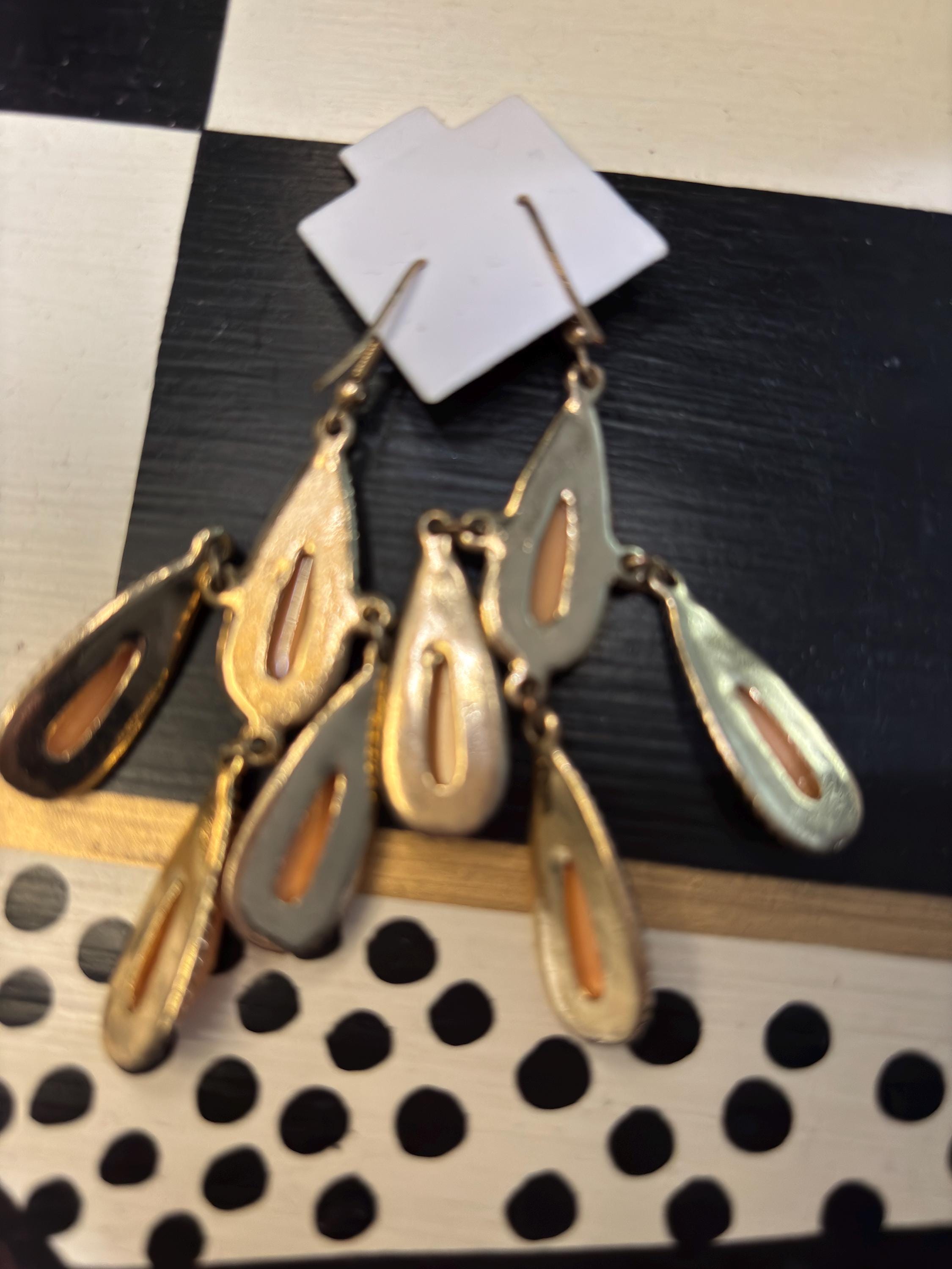 Vintage Y2K Swingy Dangles, Millennial Glamour Jewelry, Demure Peachy Light Coral & Elegant gold tone Resort Statement Earrings