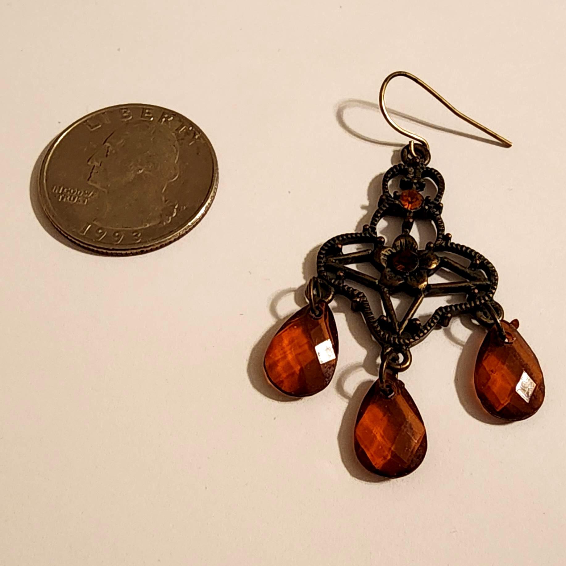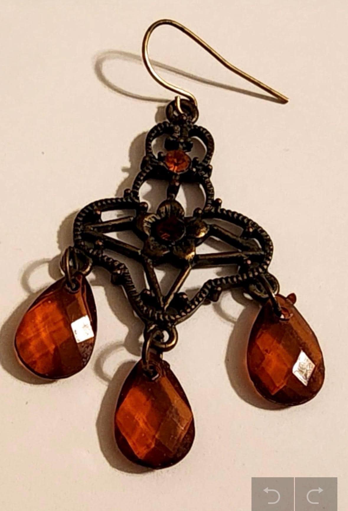 Vintage Y2K Rich Bronzy romantic revival chandelier Dangle statement earrings, Millennial Glamour Jewelry