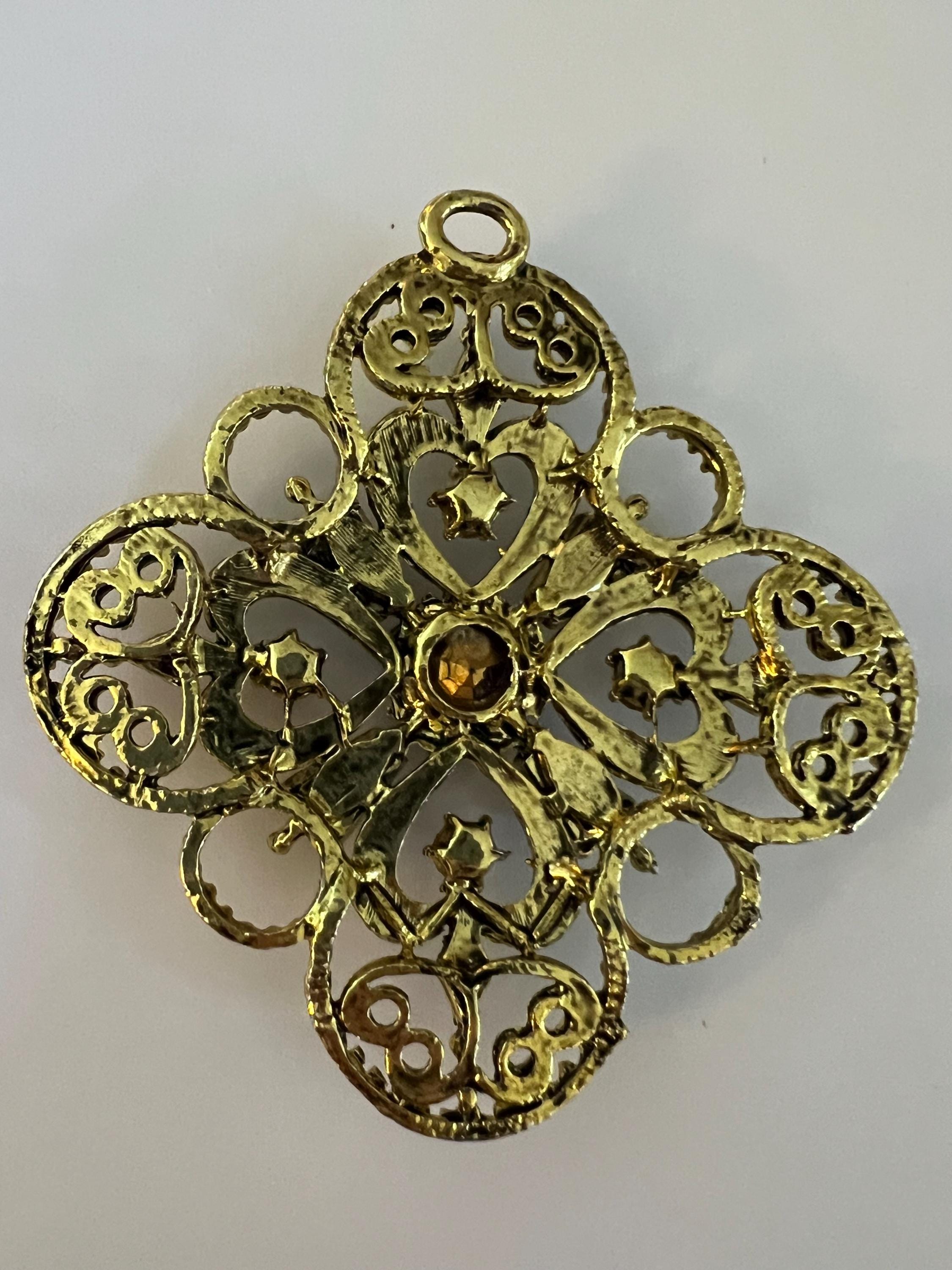 In excellent collected Y2K vintage condition. circa late 90s early 2000s. It’s a stunning piece of glamour costume jewelry (we love bling!) and measures 2.75” in both directions.