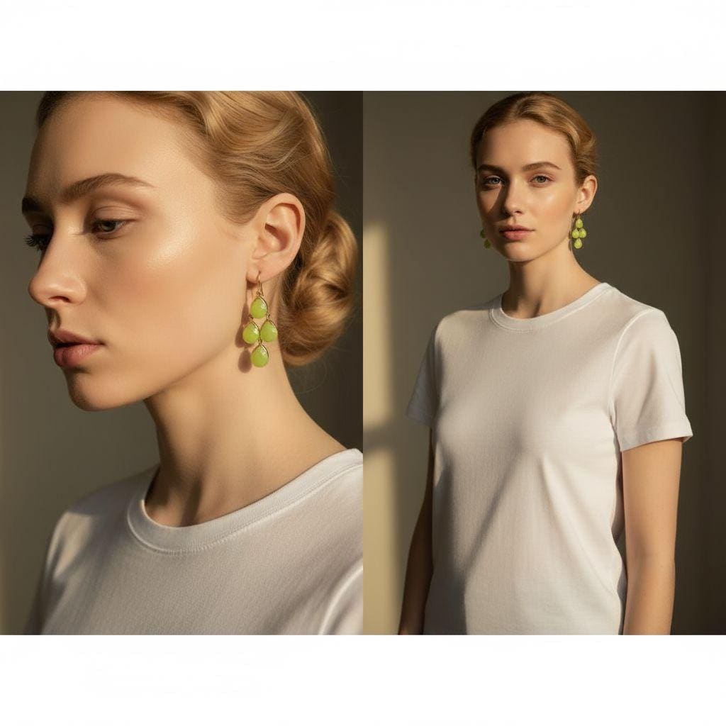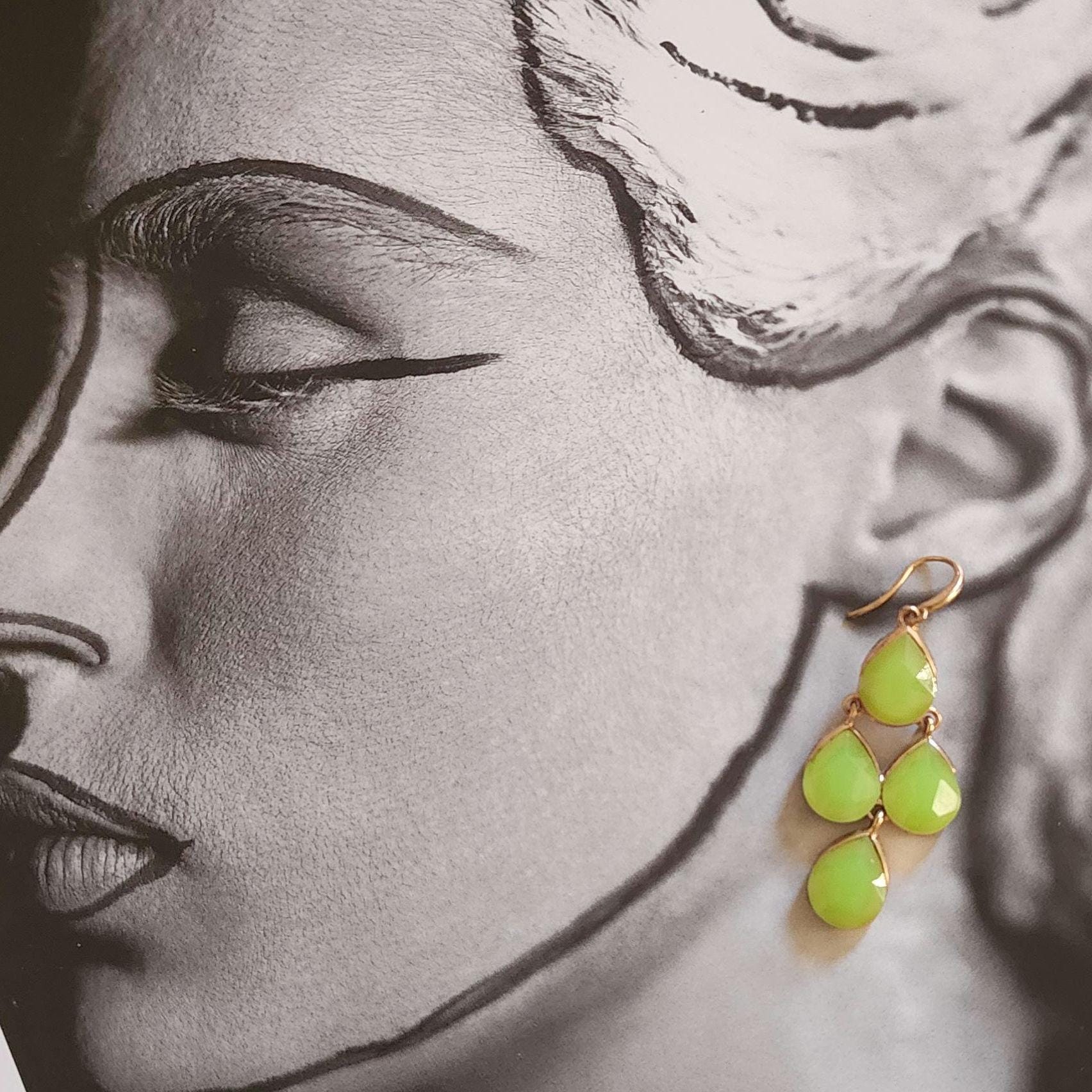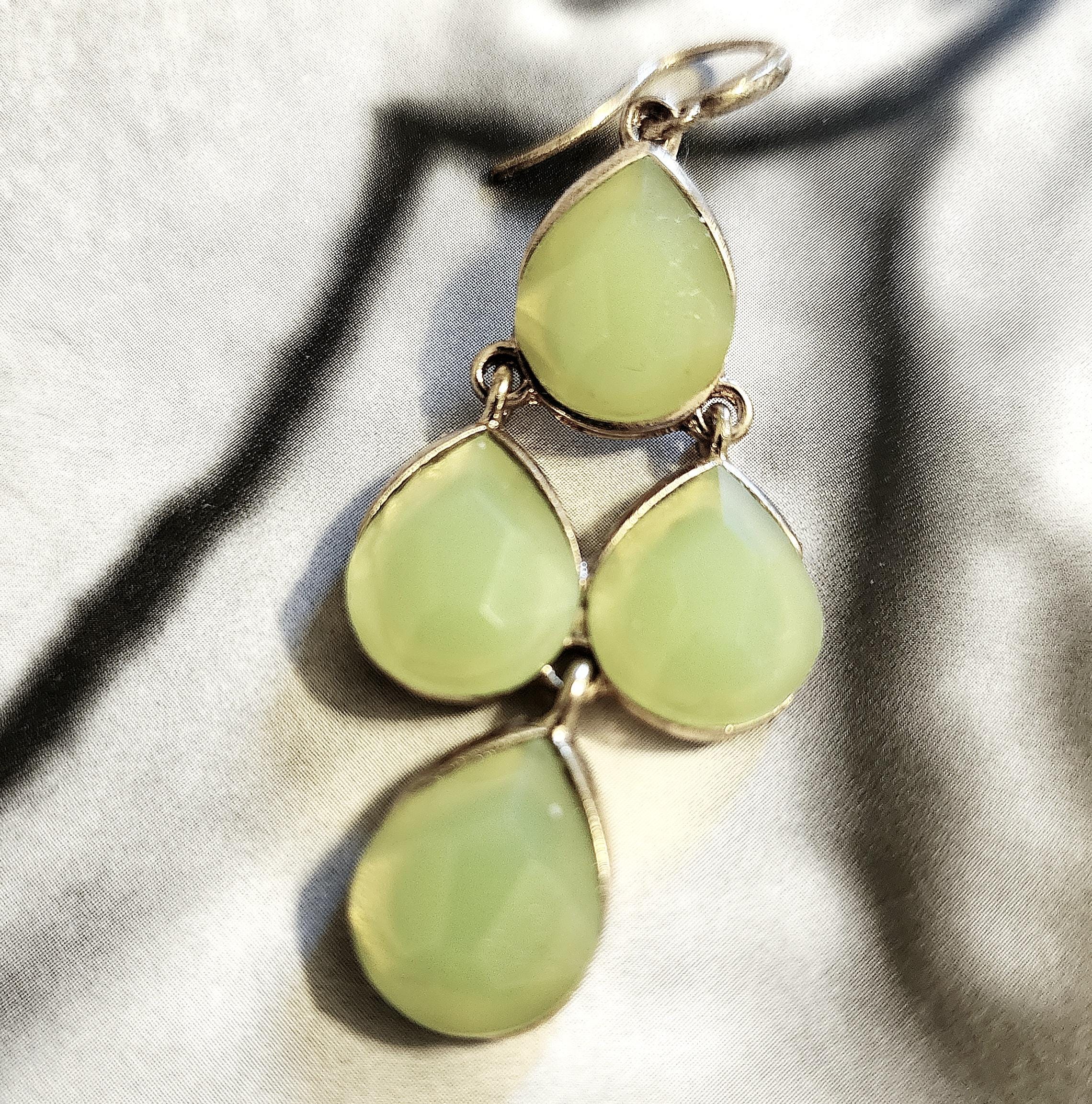 Very nice quality costume jewelry- look very high end or estate when worn… In a hard to describe cloudy milky citrus lemon lime - that looks slightly different in various lighting. Sort of modern preppy, I suppose.