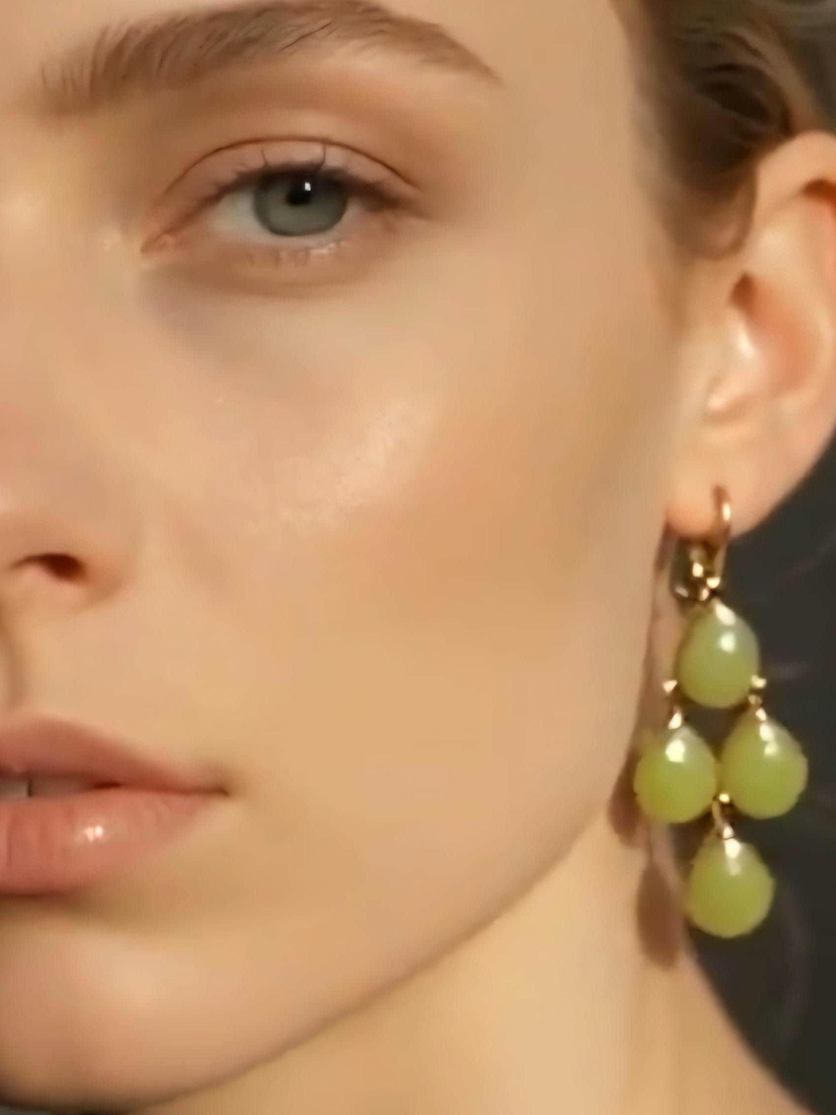 Very nice quality costume jewelry- look very high end or estate when worn… In a hard to describe cloudy milky citrus lemon lime - that looks slightly different in various lighting. Sort of modern preppy, I suppose.