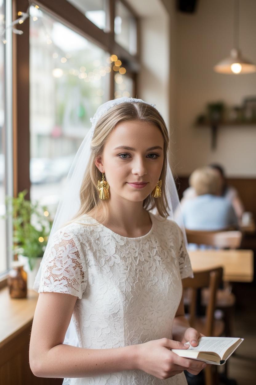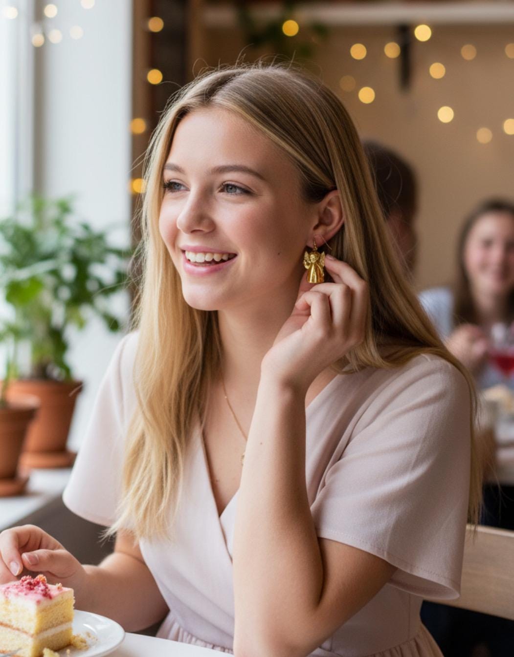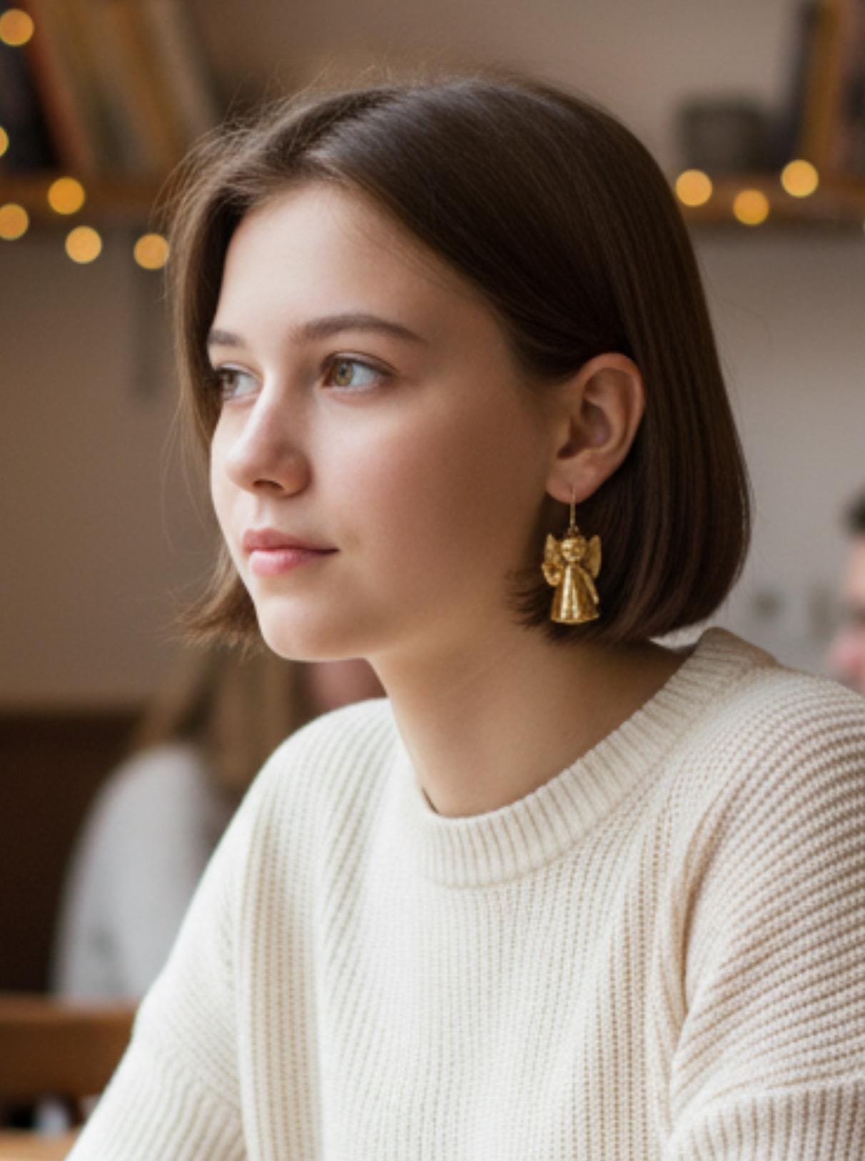 Cute Cottagecore Angel Dangle Earrings, late mid century pressed metal form collectible vintage jewelry
