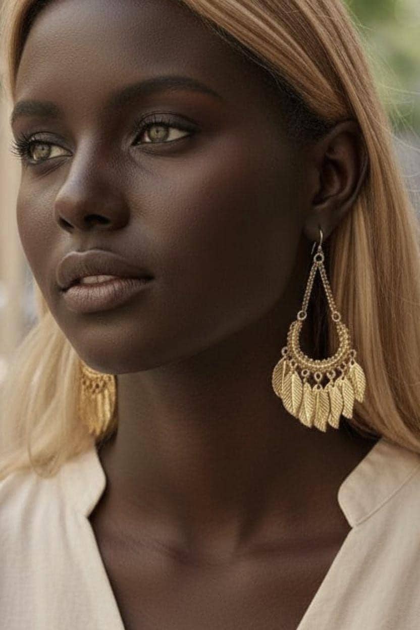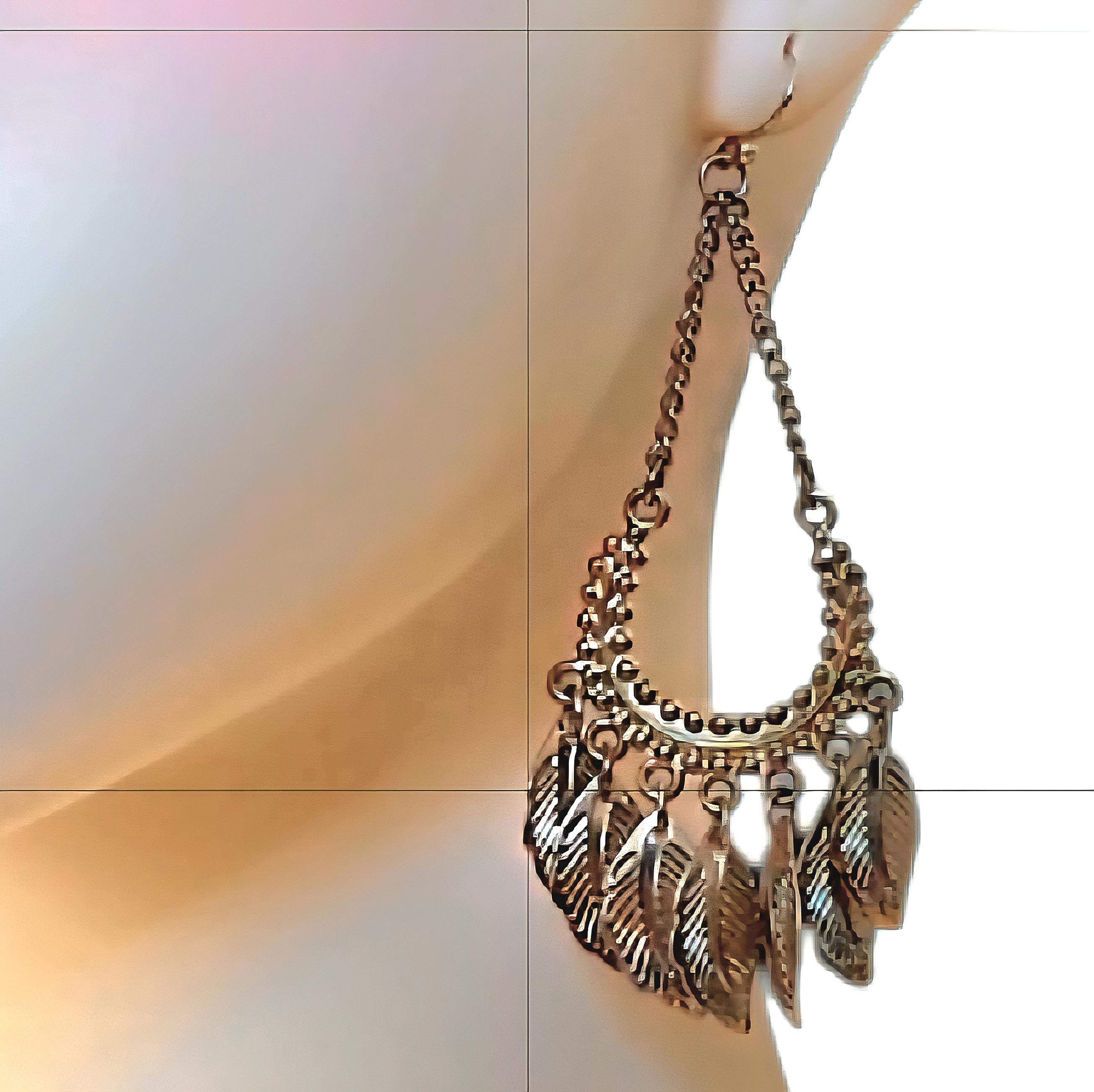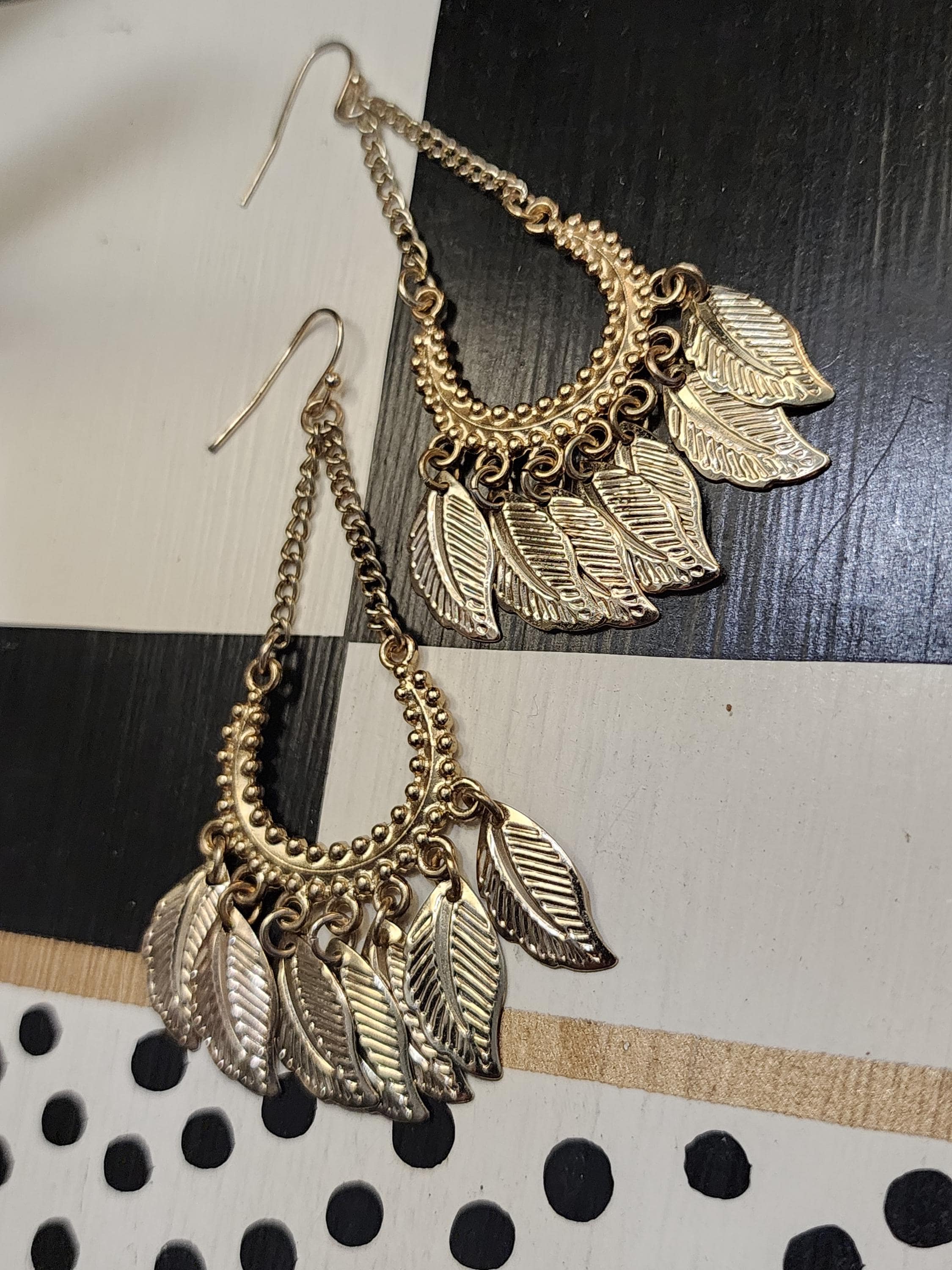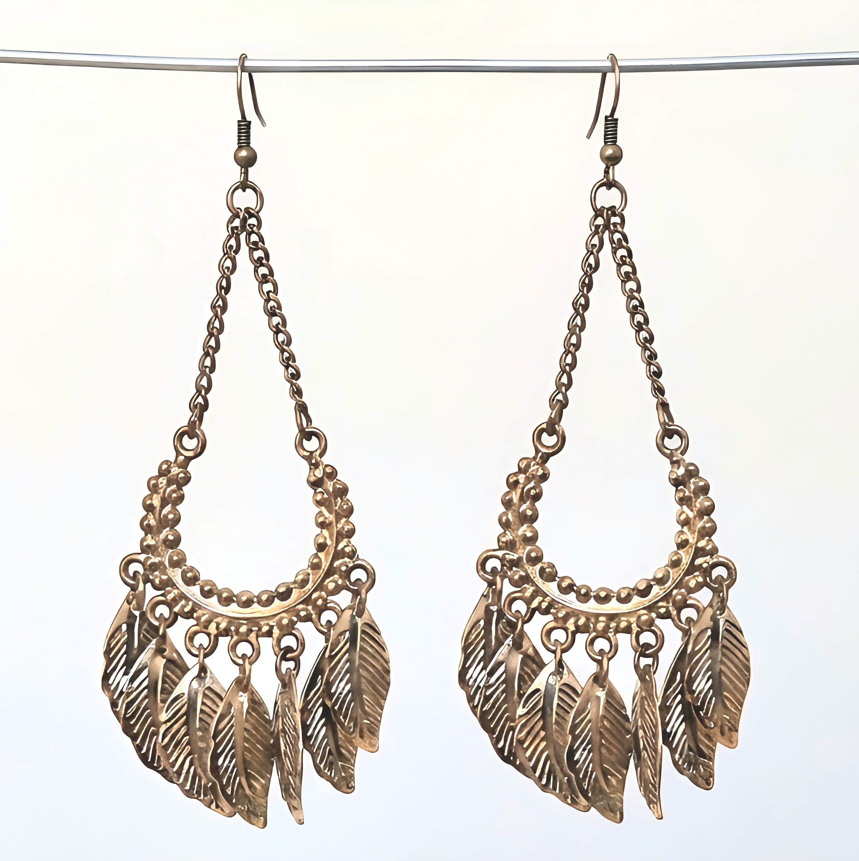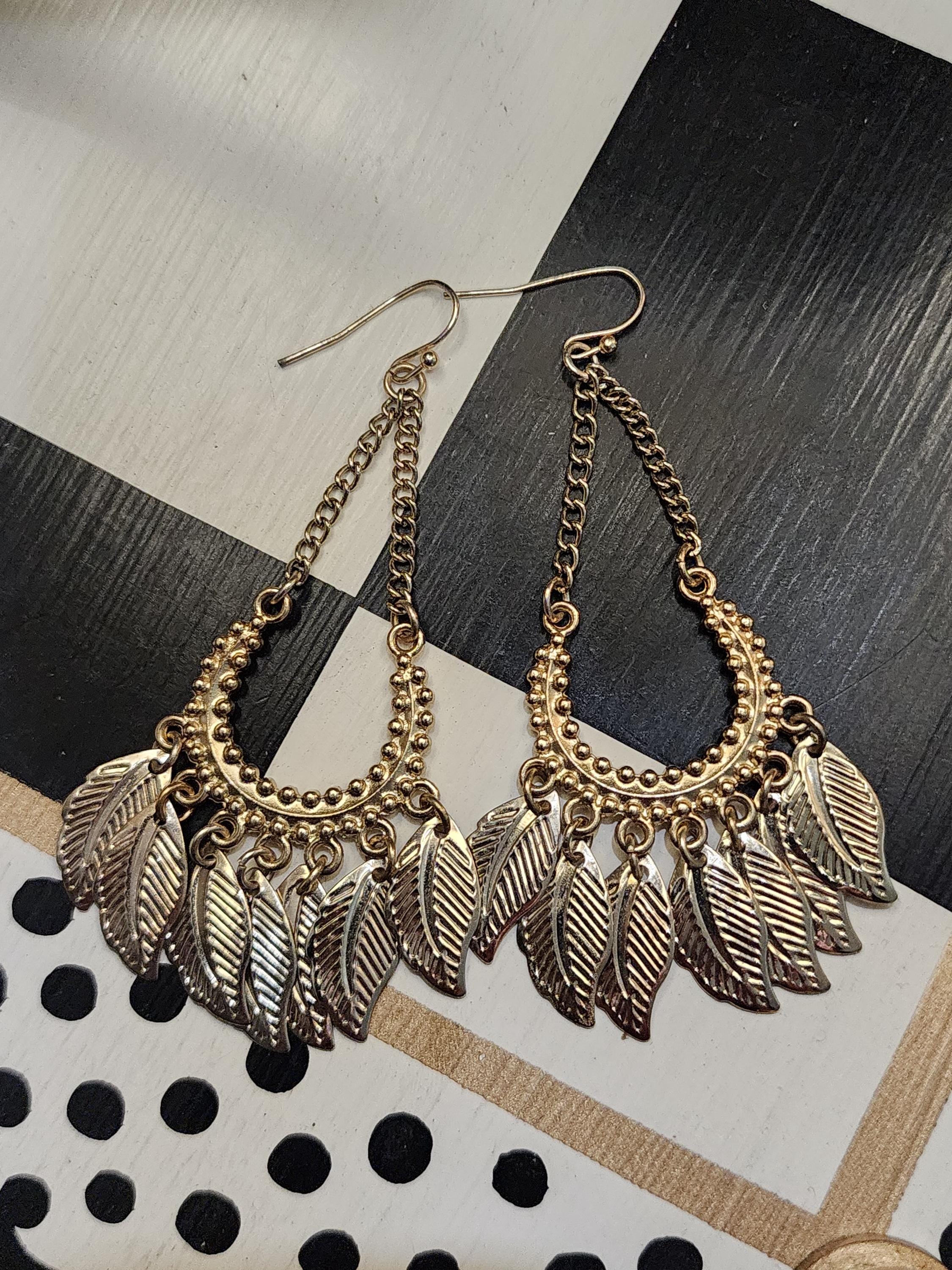 Vintage Y2K Boho Golden Feathery Dangles, Tribal Millennial Glamour Jewelry