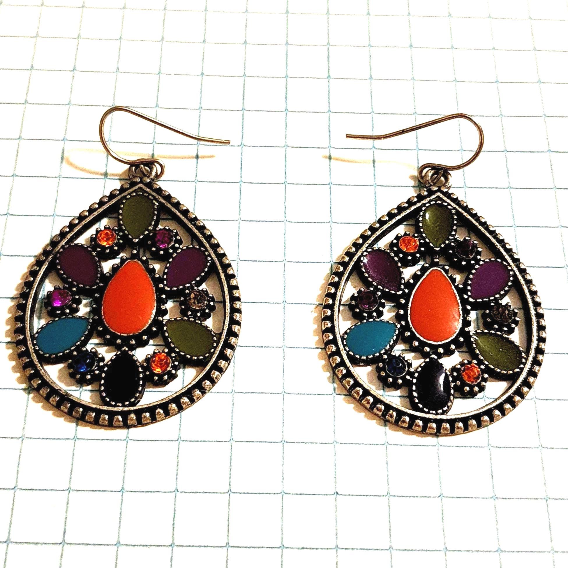 Y2K Colorful Bohemian Dangles, Millennial Glamour Jewelry, Vintage Earrings
