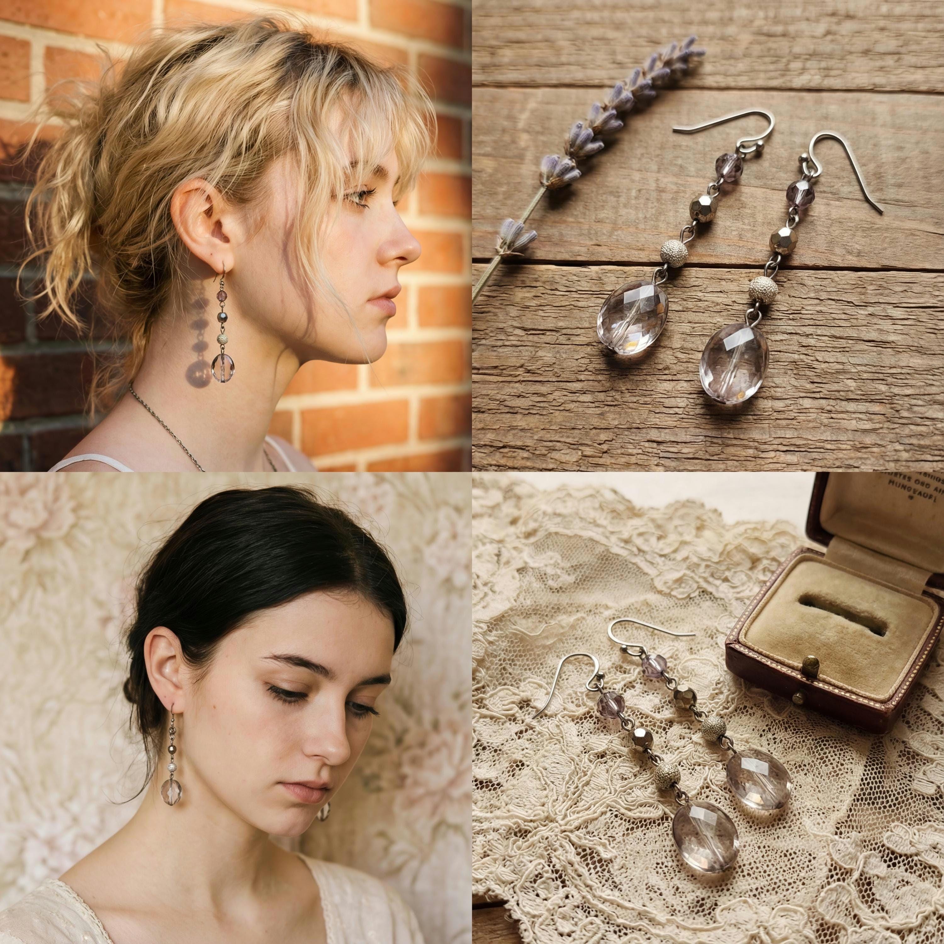 Sparkling Y2K Clear Crystal Dangles, Millennial Glamour Jewelry, Romantic Revival, Cottage Core Vintage Earrings