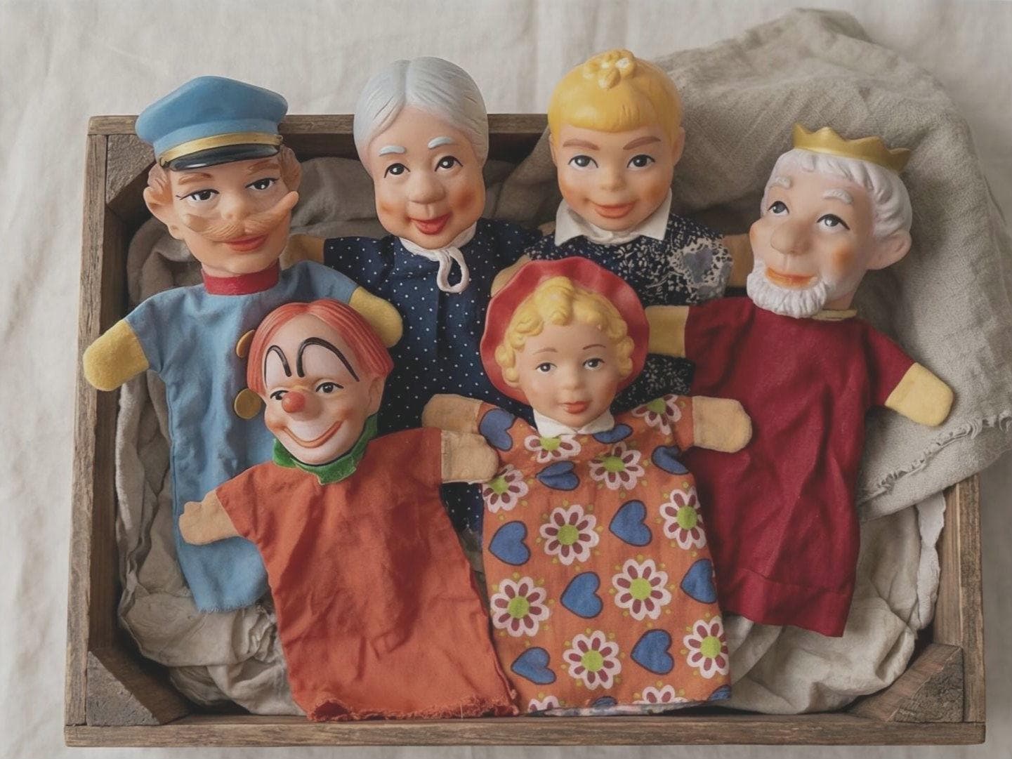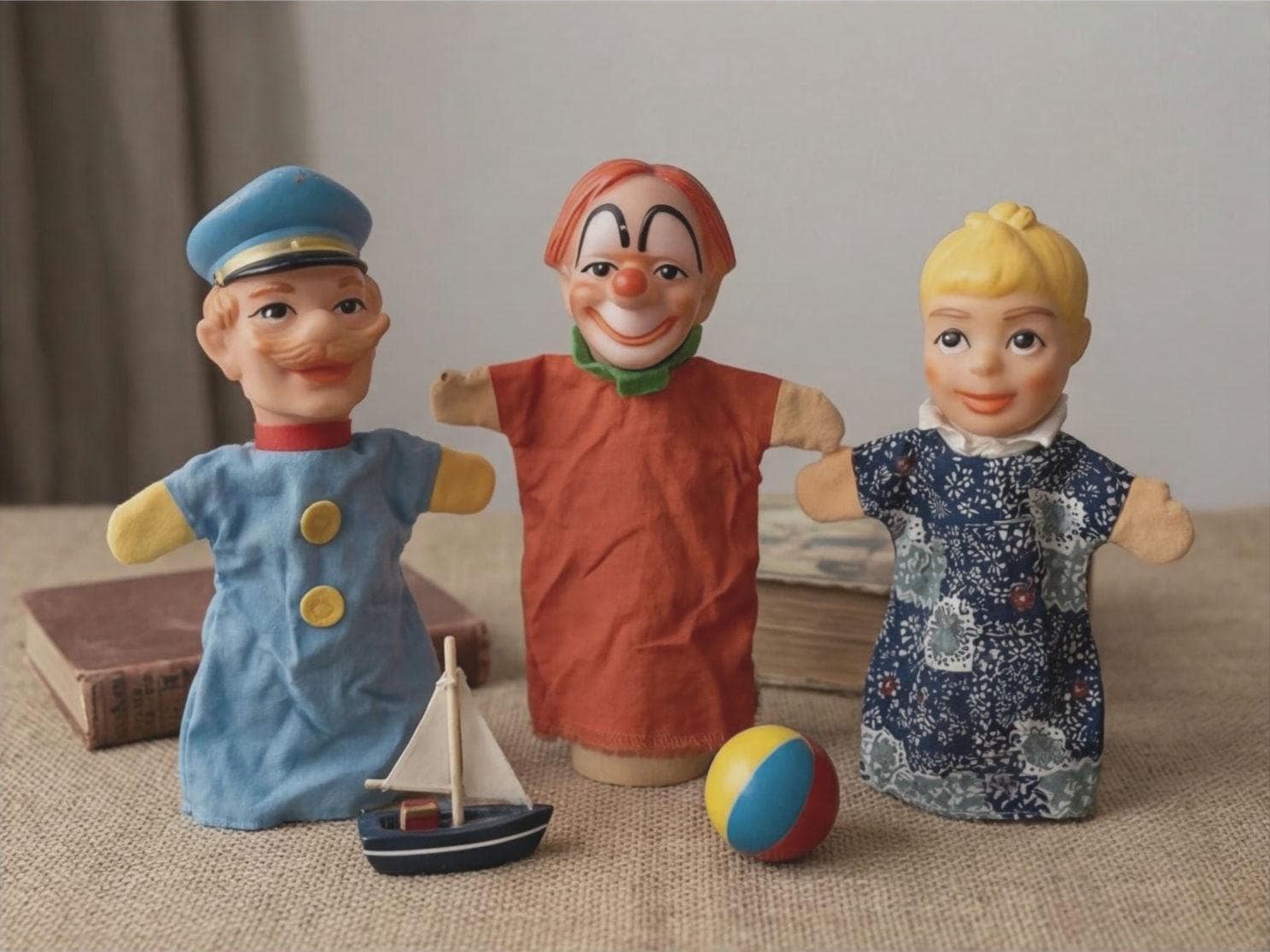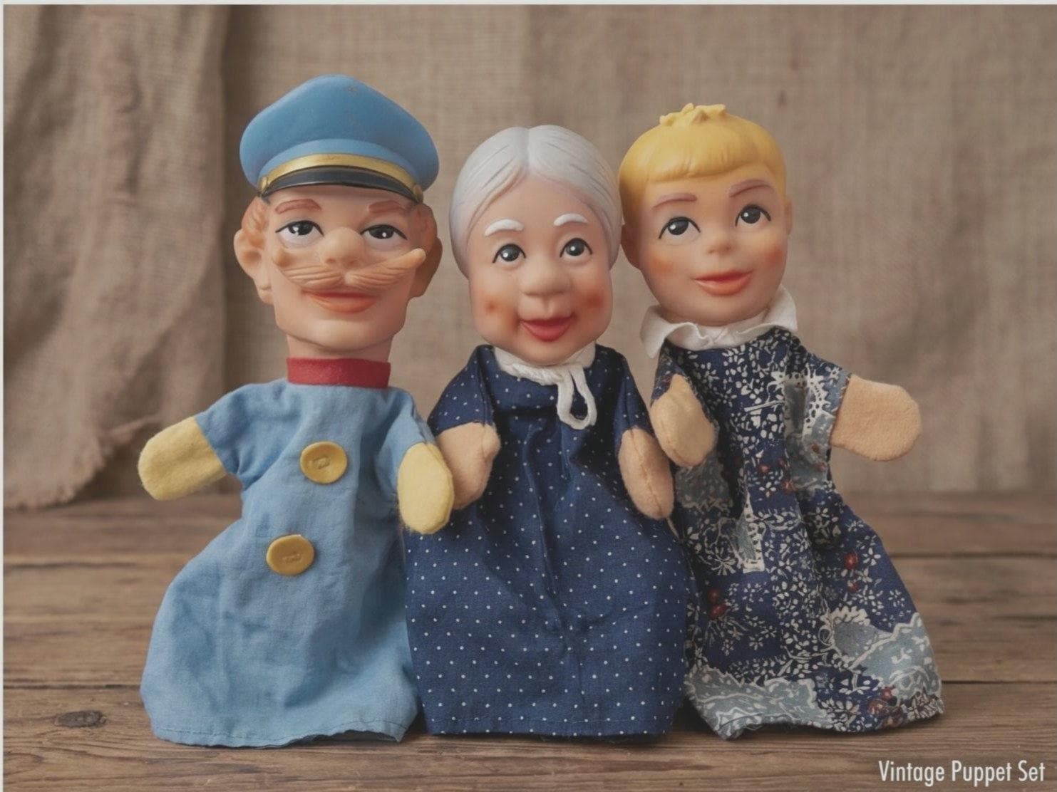 Vintage 1960s Rubber Head Hand Puppets – Mr. Rogers Style Character Set