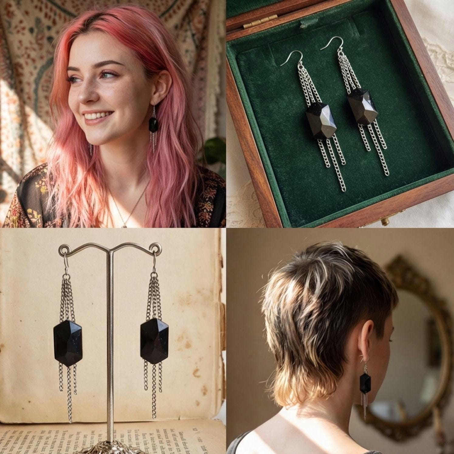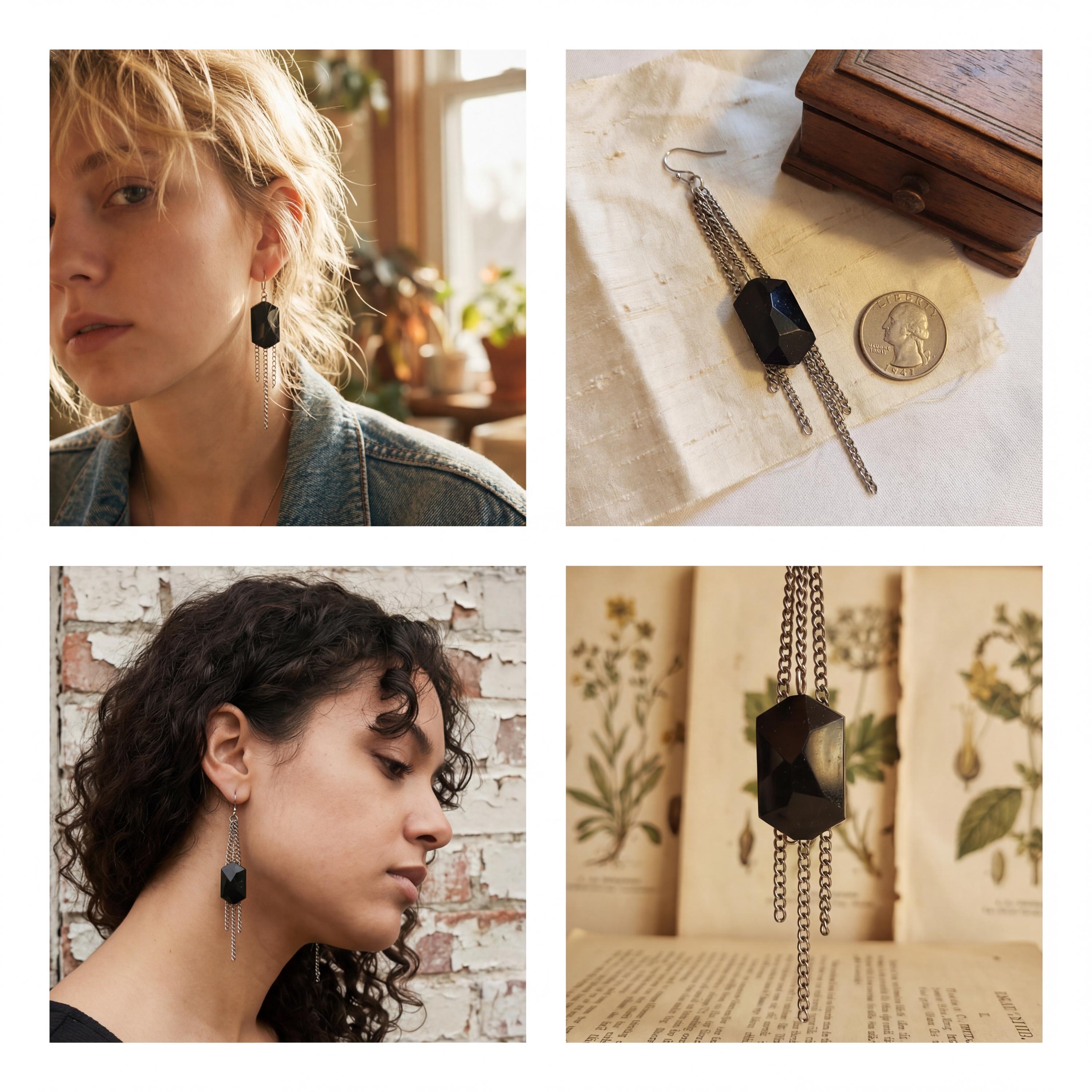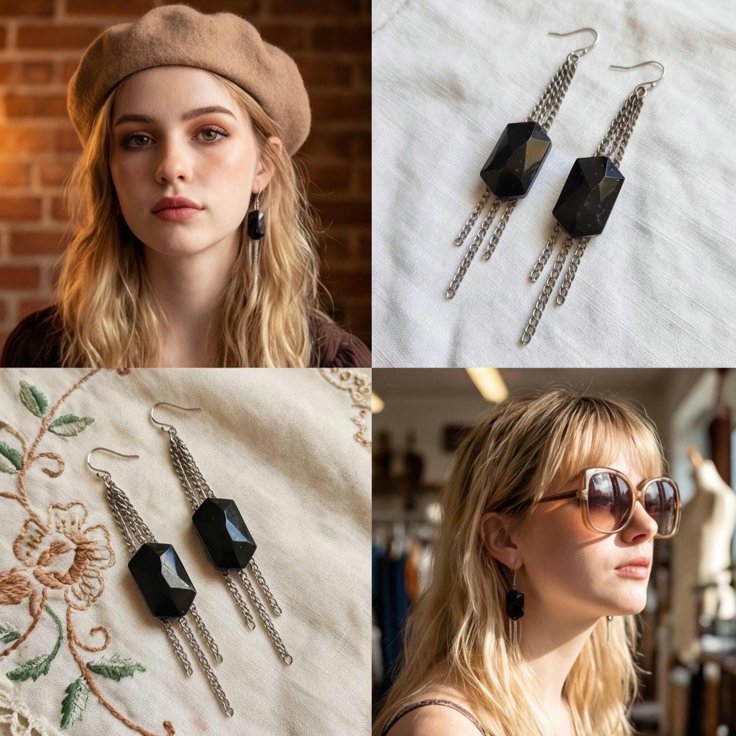 Y2K Shiny Dangles, Millennial Glamour Jewelry, Vintage Earrings