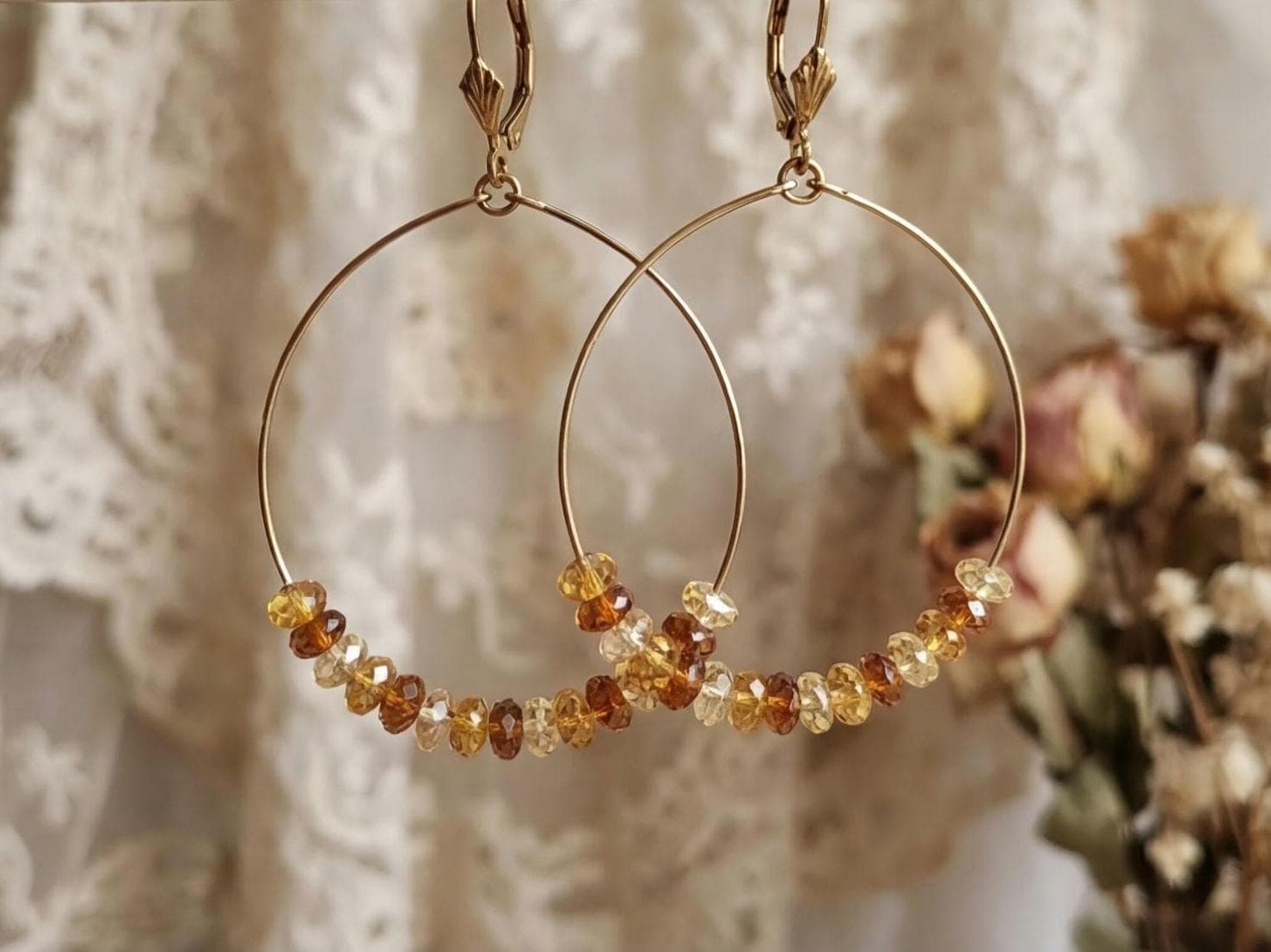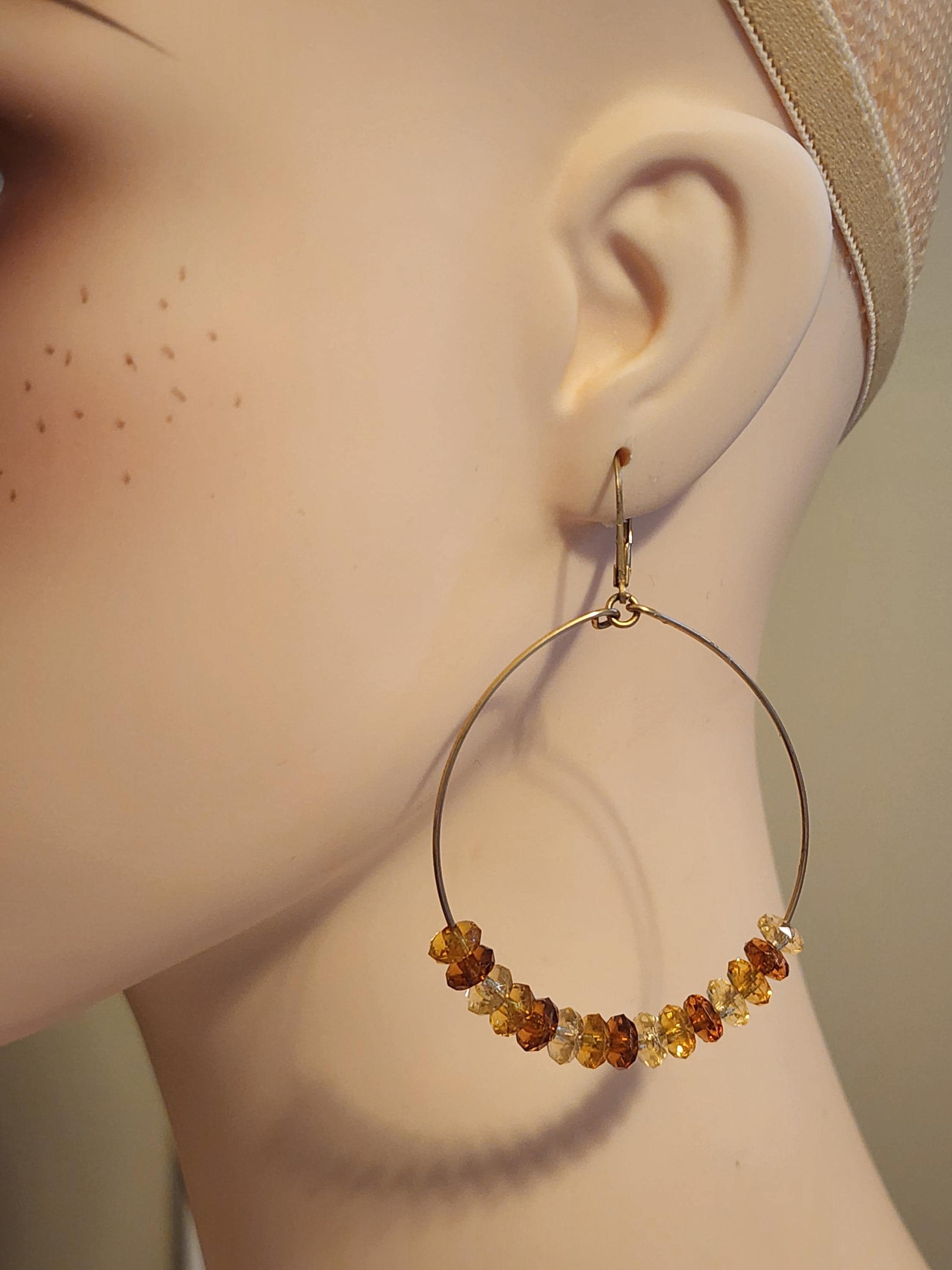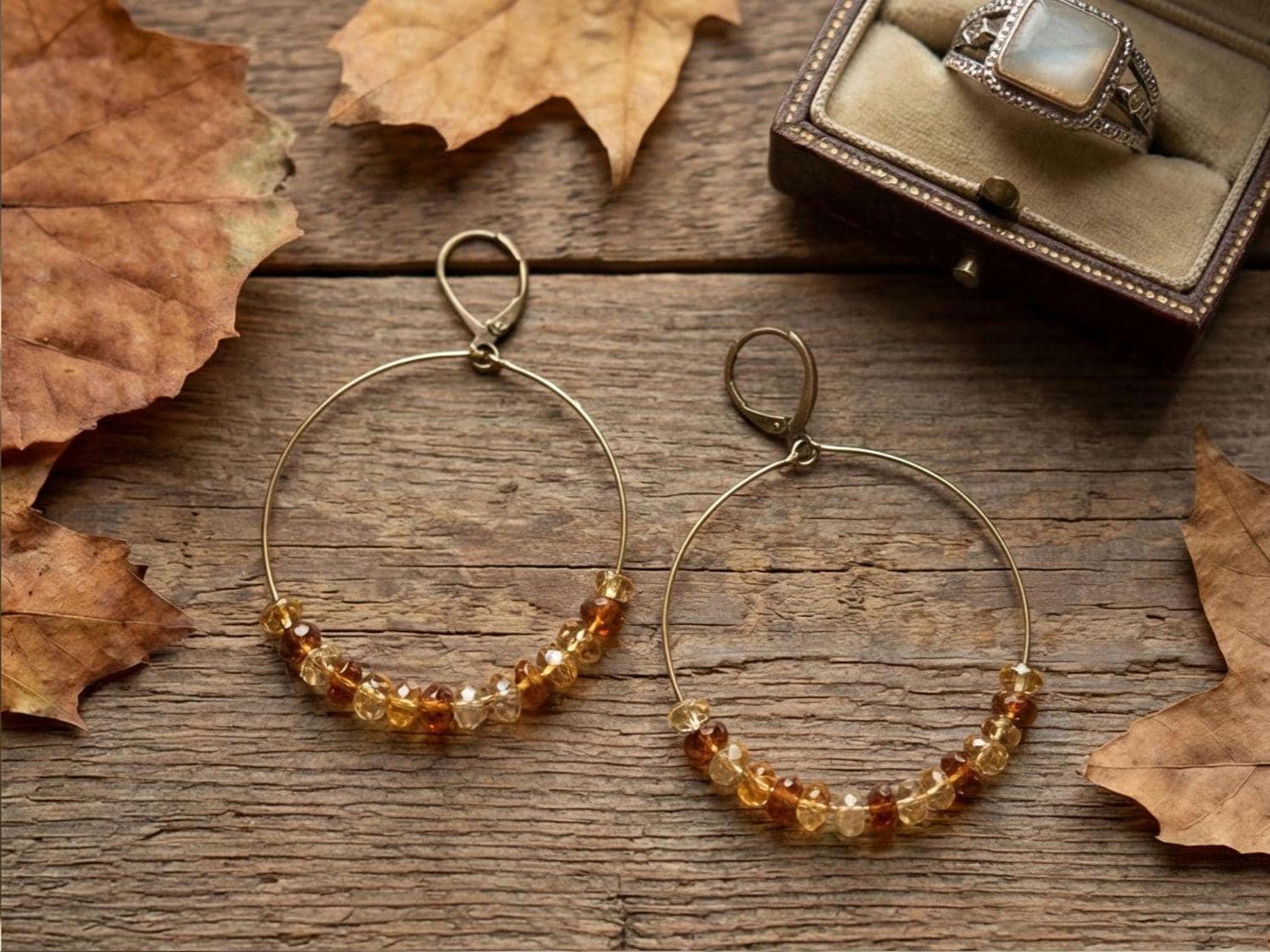 Boho Y2K Beaded Hoop Dangles, Millennial Glamour Jewelry, Vintage Earrings