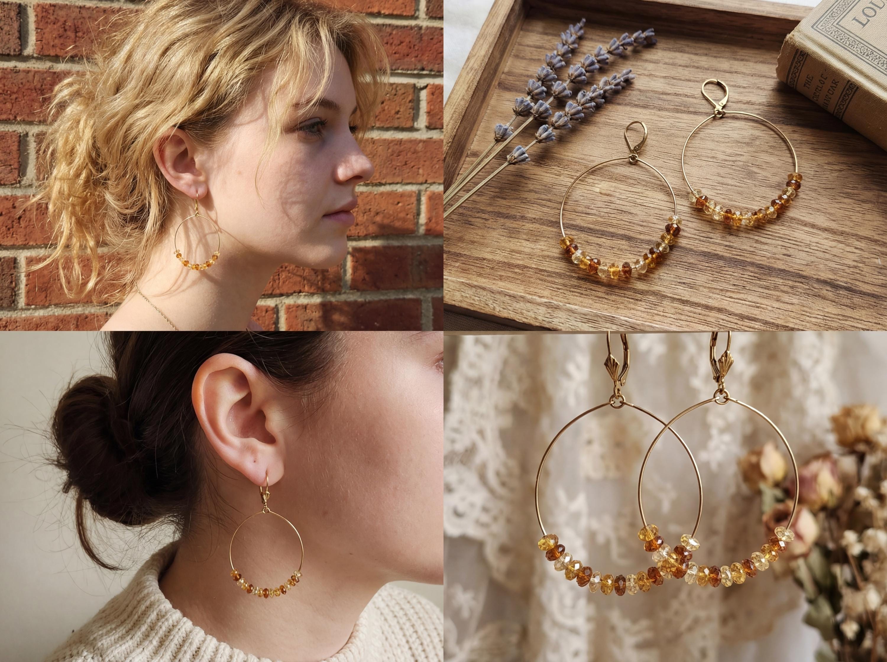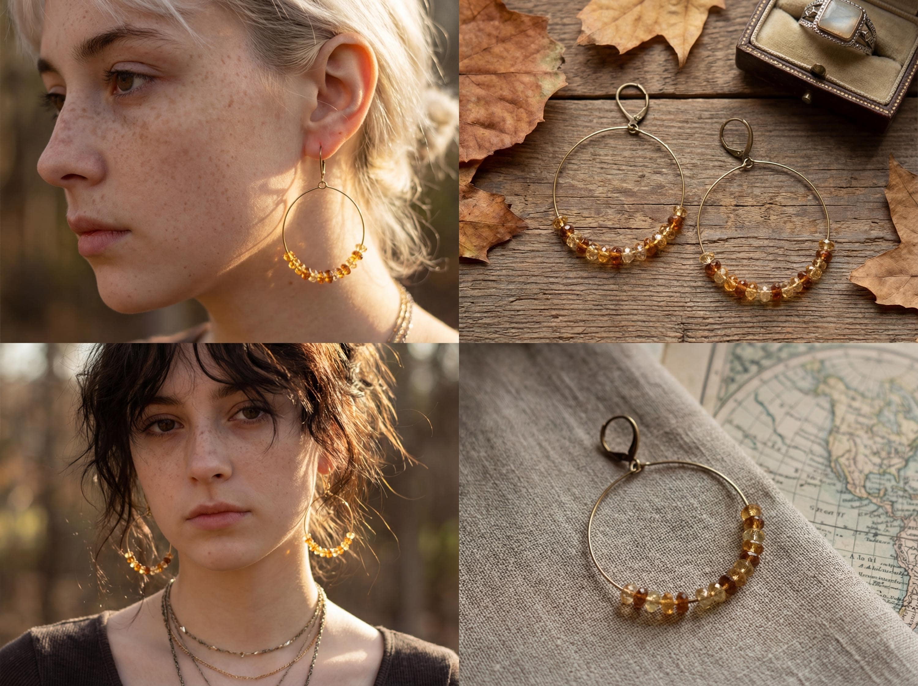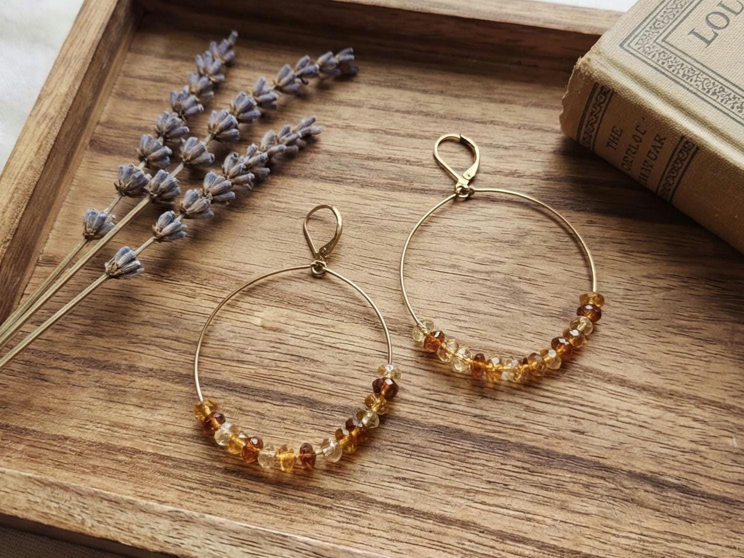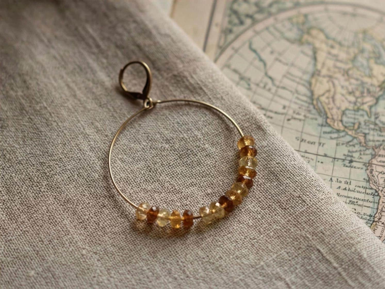 Boho Y2K Beaded Hoop Dangles, Millennial Glamour Jewelry, Vintage Earrings