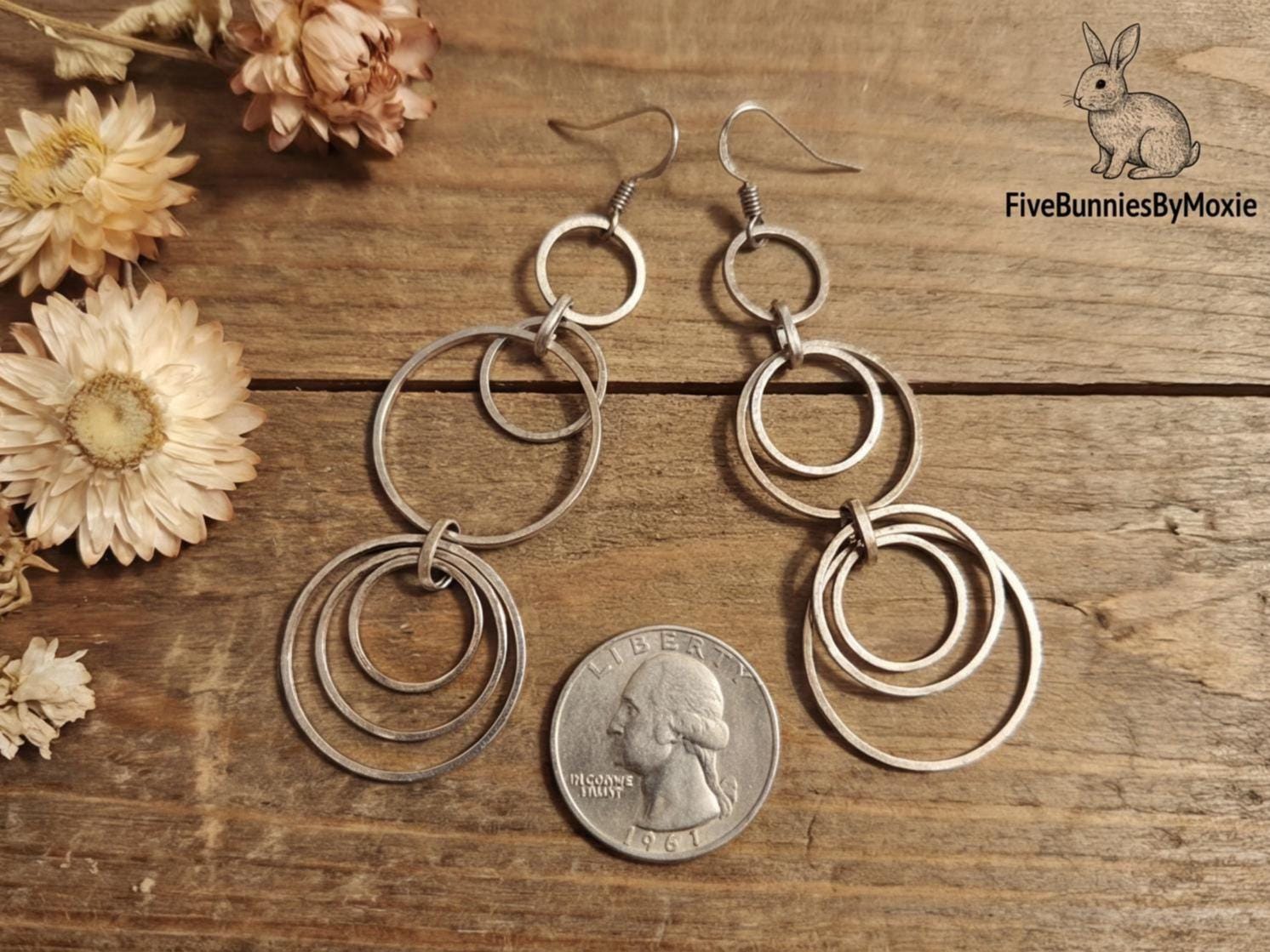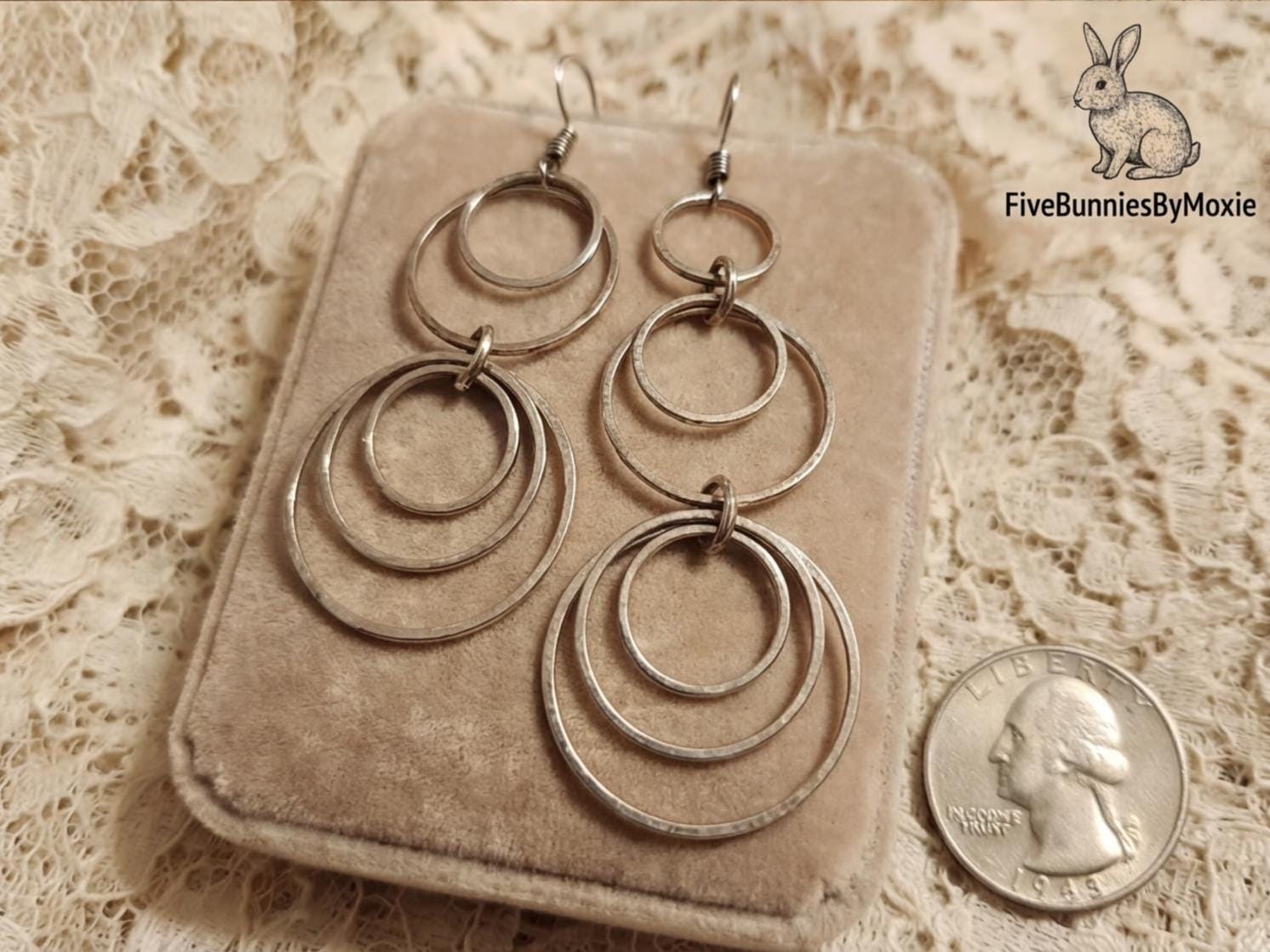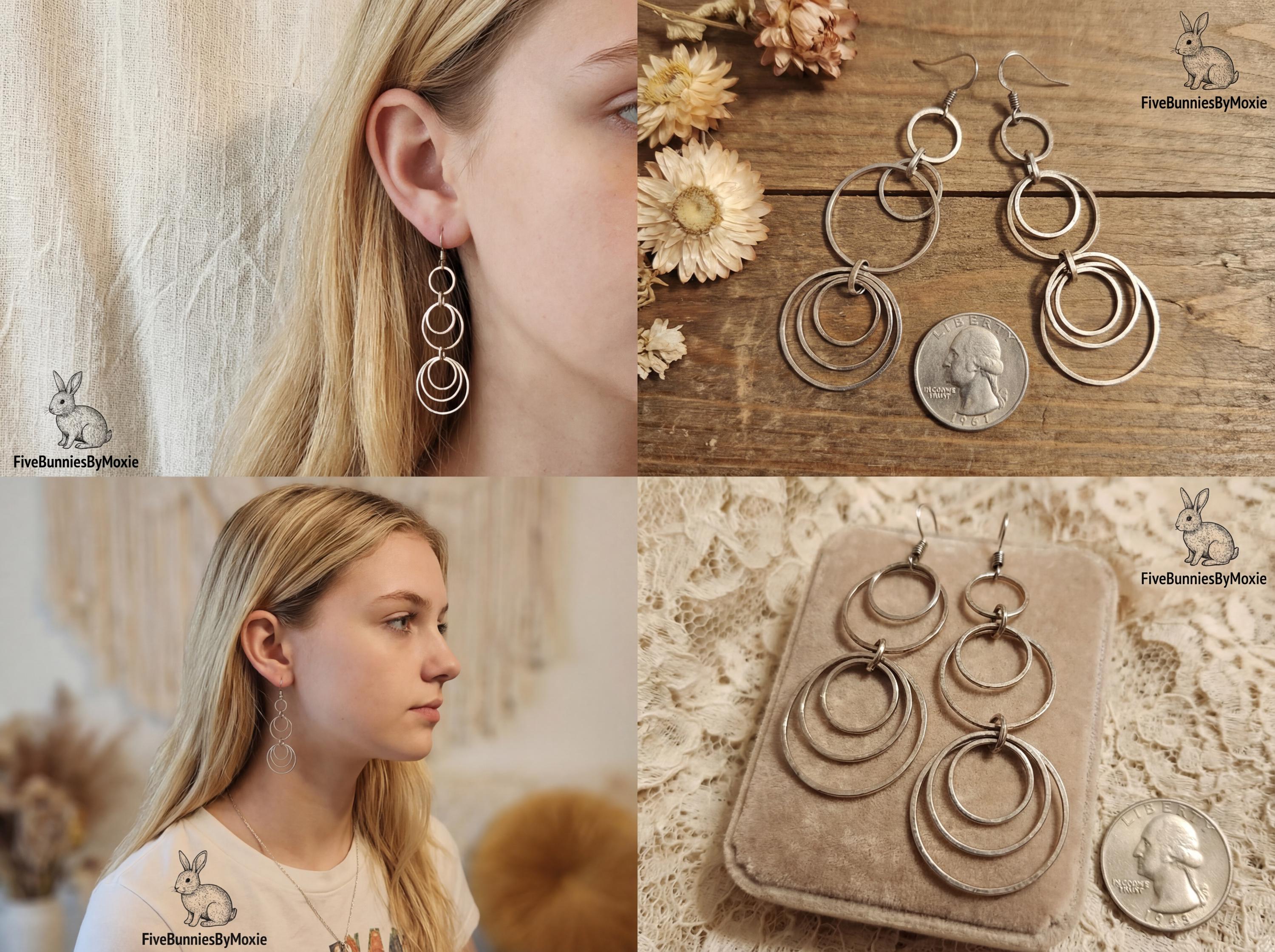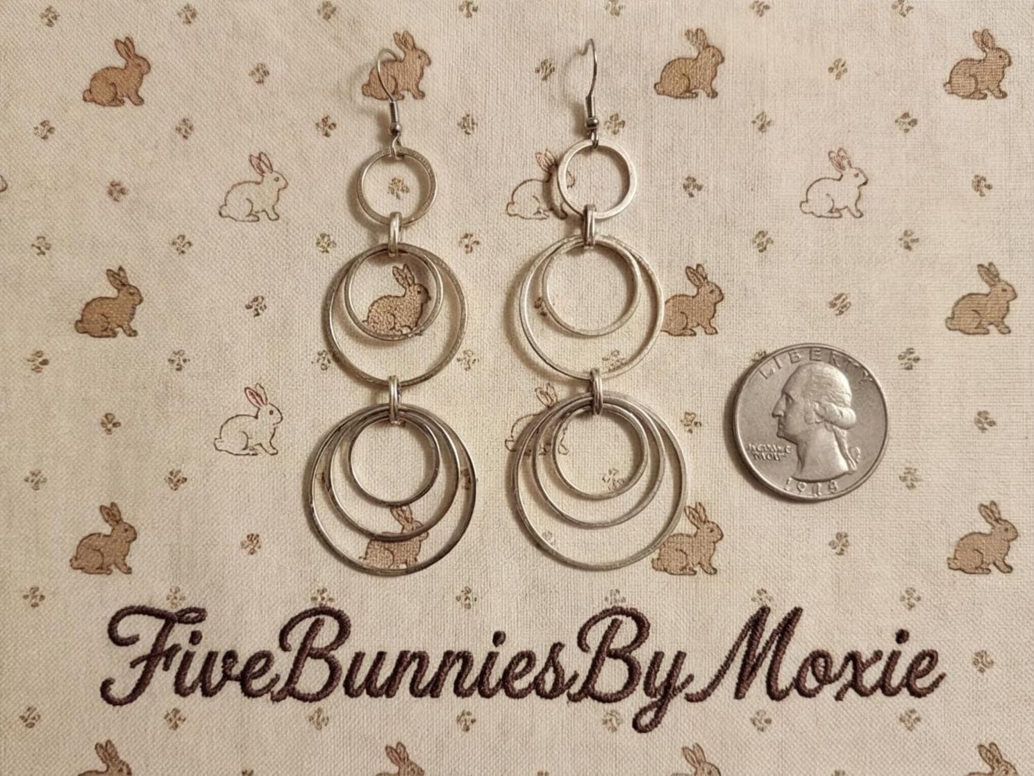 Y2K Silver tone multi Hoop Dangles, Millennial Glamour Jewelry, Vintage Earrings