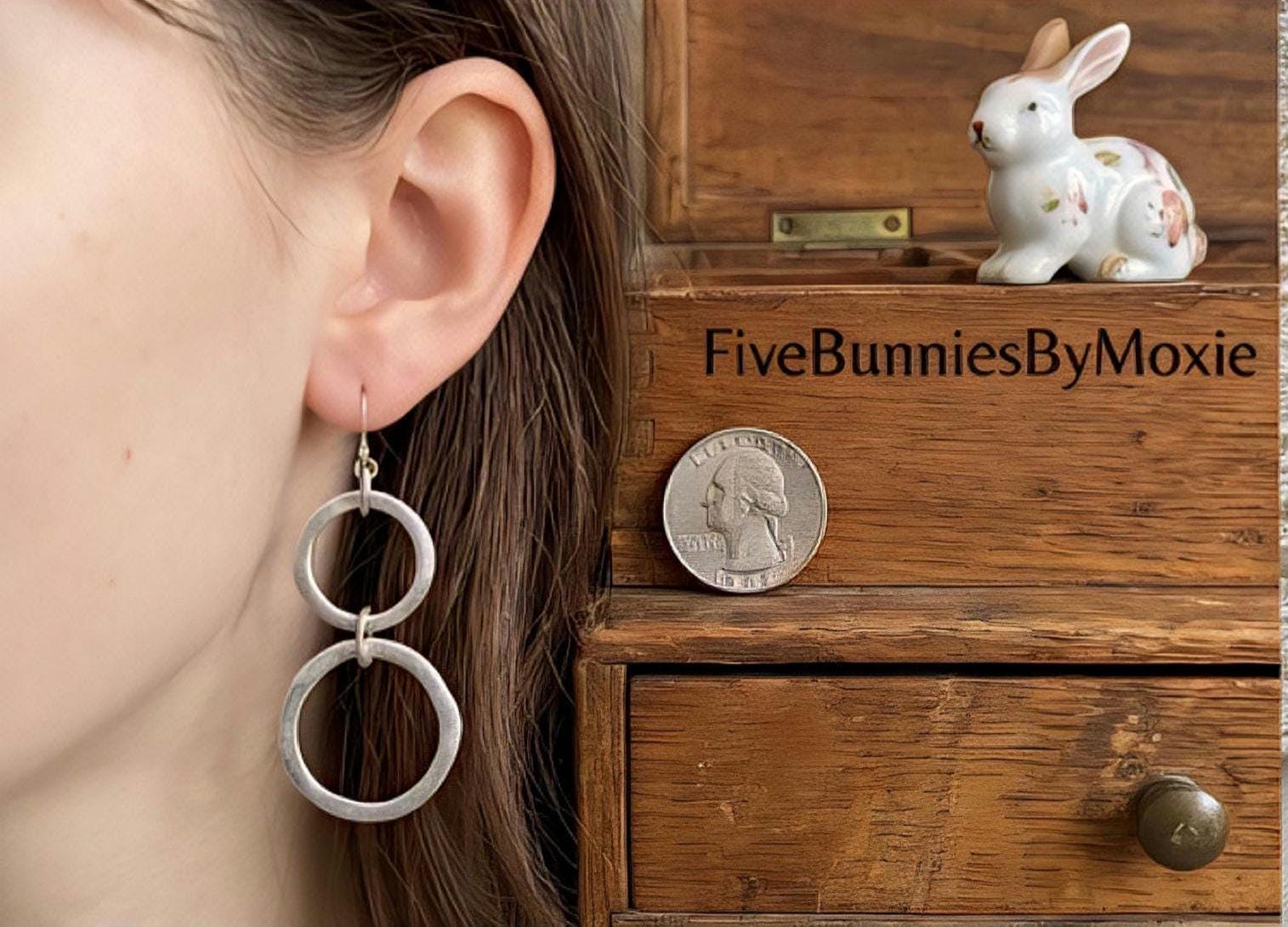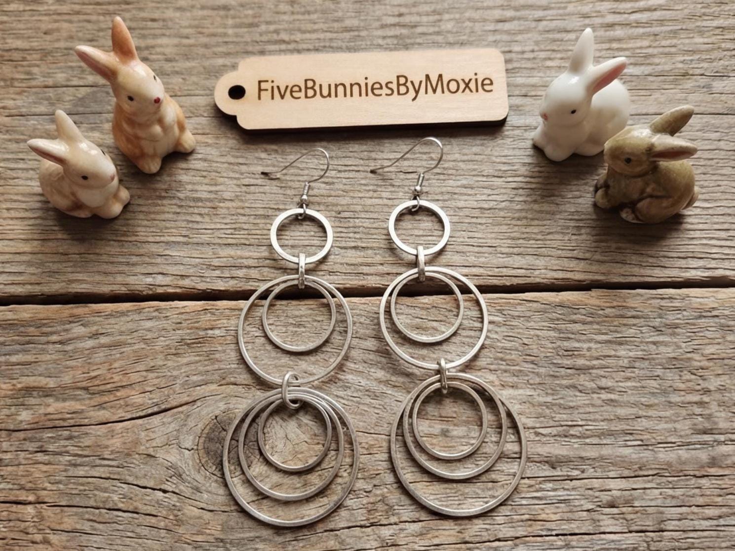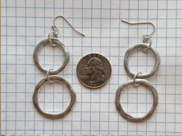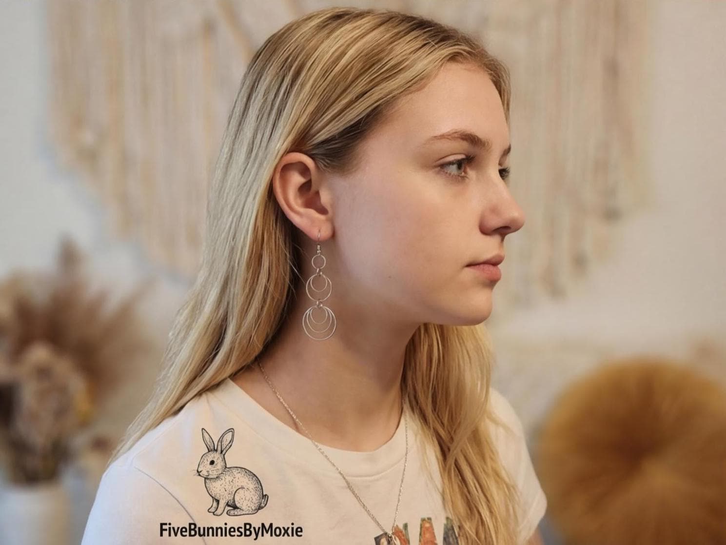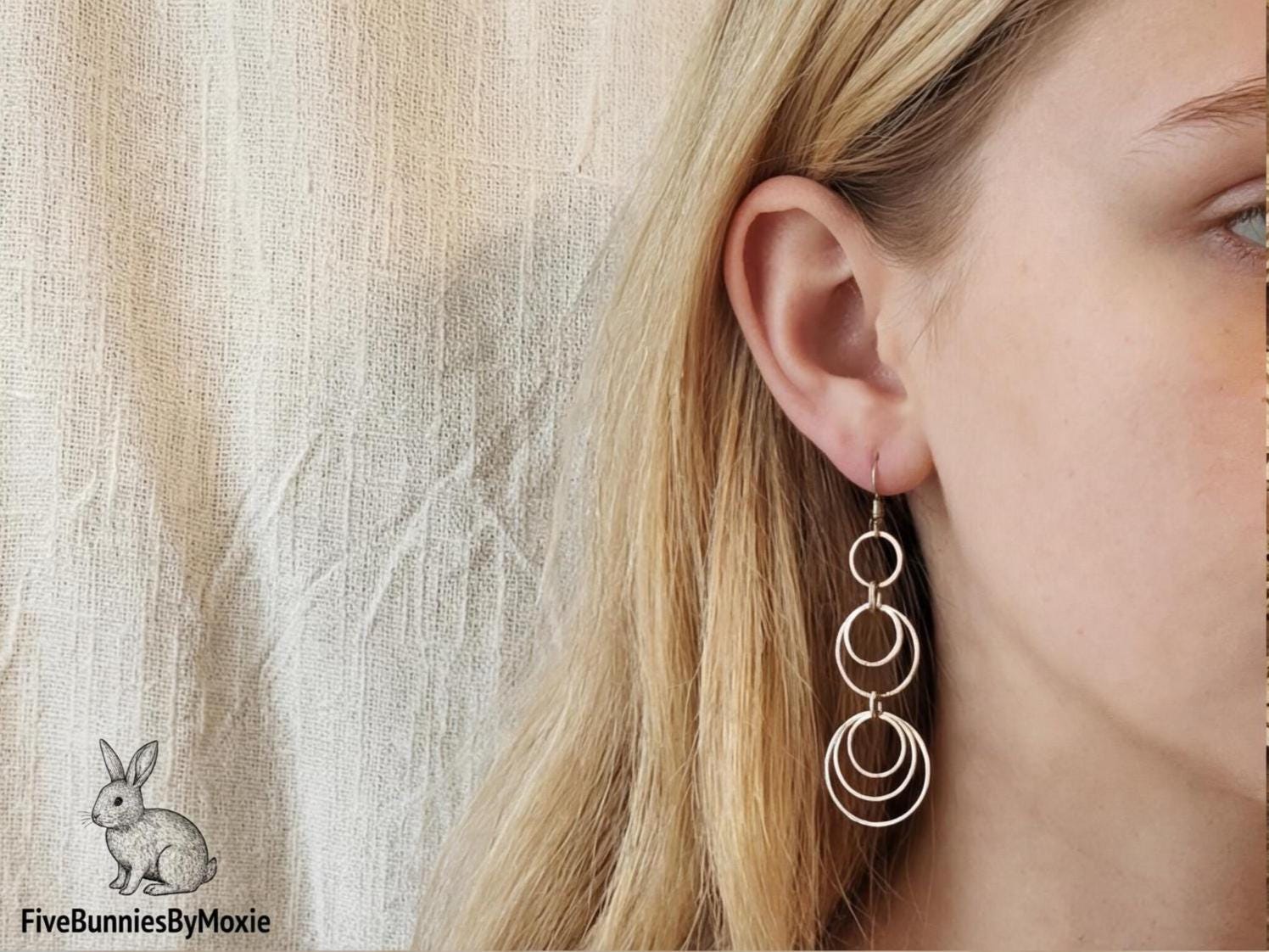 Y2K Silver tone multi Hoop Dangles, Millennial Glamour Jewelry, Vintage Earrings