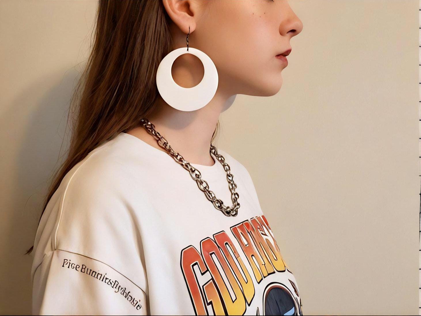 Y2K Vintage White Hoop Earrings, 90s Glam Statement Jewelry